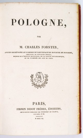 FORSTER Charles - Pologne. Paris 1840. Firmin Didot Fréres Éditeurs. 8, s. [4], 348, tabl. 54, mapa rozkł. 1. opr. oryg. kart. L'Univers Pittoresque, t. 10.