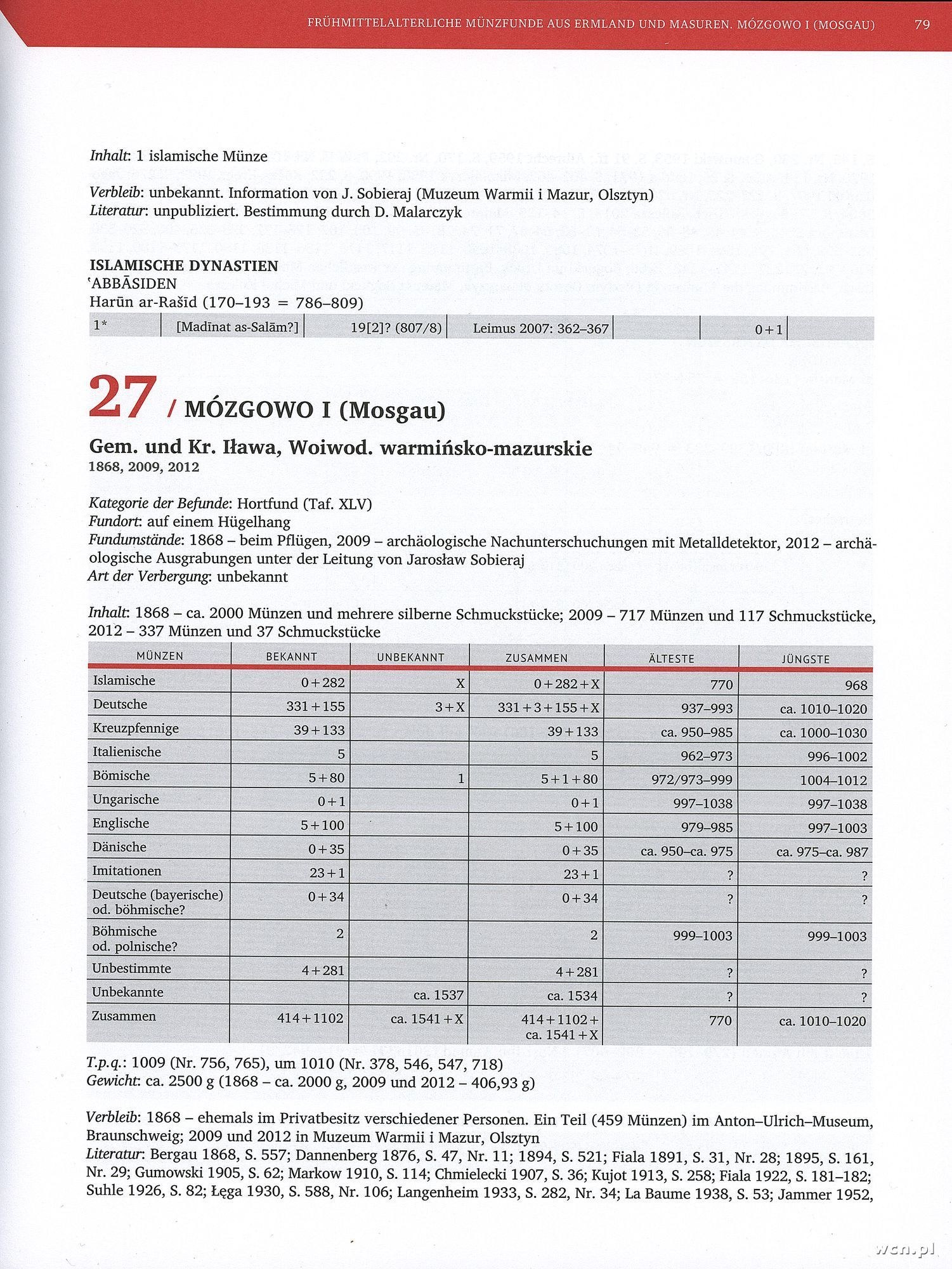 Frühmittelalterliche Münzfunde aus Polen. Inventar V. Ermland und Masuren, Funde aus Polen 2011-2013, Addenda et Corrigenda / Mateusz Bogucki, Peter Ilisch, Stanisław Suchodolski - Inwentarz Polskich Skarbów Wczesnośredniowiecznych, w którym zebrano znaleziska skarbów i monet z lat 500–1150, z obszaru Warmii i Mazur, a także uzupełnienia pozostałych tomów o skarby z najnowszych lat, Warszawa 2016