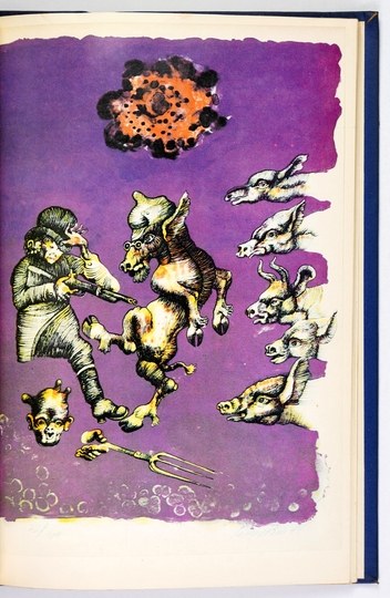 ORWELL George - Folwark zwierzęcy. Przeł. Teresa Jeleńska. Ilustrował Jan Lebenstein. [Kraków] 1985. Oficyna Literacka. 4, s. [3]-48, [2], tabl. 10. op. oryg. pł.
