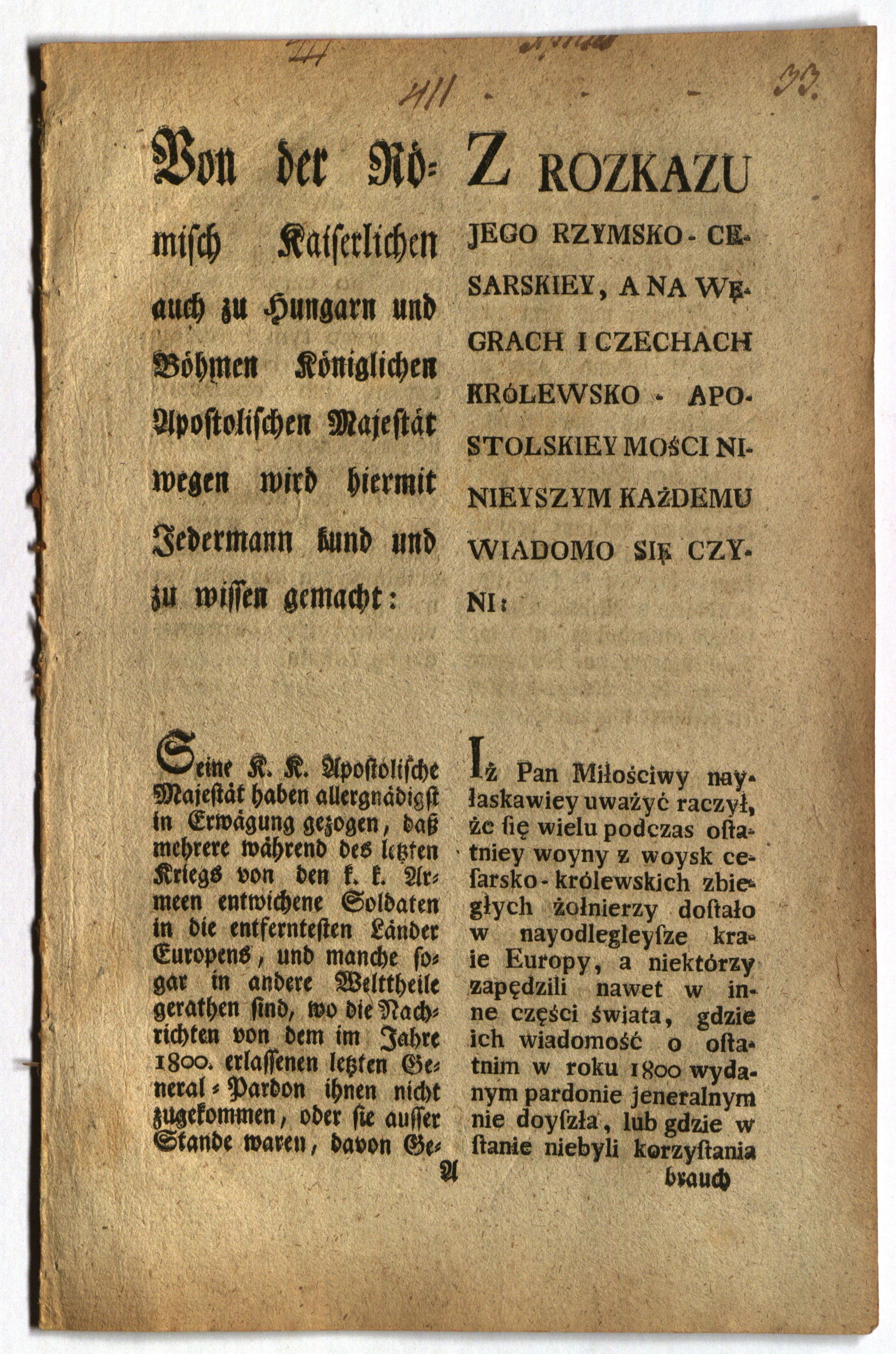 jego rzymsko-cesarskiej, a na Węgrach i Czechach Królewsko-Apostolskiey Mości… –