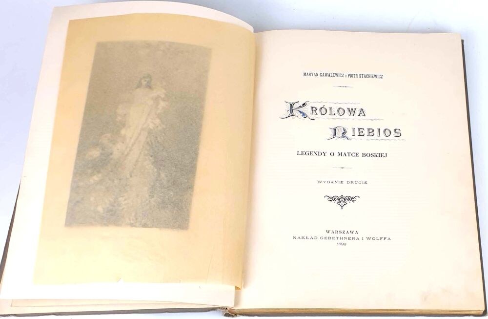 Zbiór legend o Matce Boskiej opracowany przez Mariana Gawalewicza (1852-1910). Przygotowanie dzieła poprzedziło kilka lat własnych starań autora i korzystania ze "wskazówek osób z przedmiotem najbardziej obeznanych", takich jak Eliza Orzeszkowa, Jan Karłowicz, S. Jarzębowski (ze wstępu). Największym atutem książki są wyjątkowej urody ilustracje wykonane w technice heliograwiury wg rysunków Piotra Stachiewicza (1858-1938), do których pozowała żona artysty. Sam autor opracowania napisał o nich: "Kiedy zobaczyłem pierwsze szkice rzucone na papier, powiał na mnie od razu jakby czar jakiś, wnikający do duszy coraz głębiej, im dłużej się w nie wpatrywałem". Książka zyskała wielkie uznanie czytelników, a obrazy olejne przygotowane do prezentowanego albumu zachwyciły polską publiczność, wystawiano je wielokrotnie w Warszawie, Krakowie, a także w Wiedniu, gdzie krytyka chwaliła narodowy sposób ilustracji legend. Kartony przygotowane do wydania ich w książce znajdują się obecnie w MN w Krakowie.