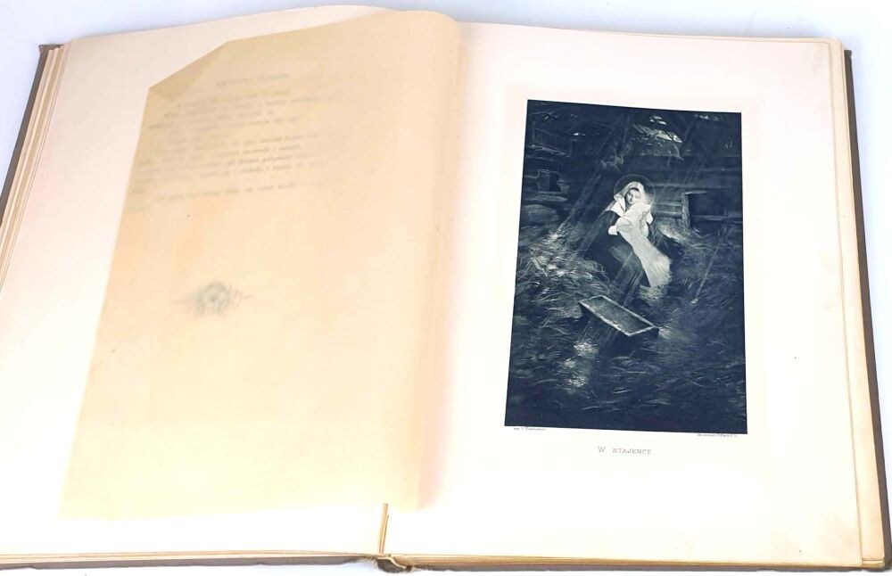 Na tablicach heliograwiurowe reprodukcje obrazów Stachiewicza: Dziewica z kwiatu, W