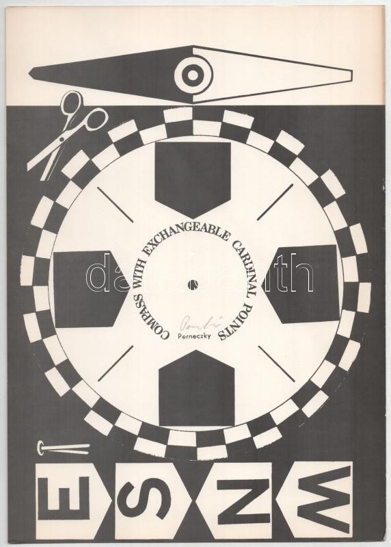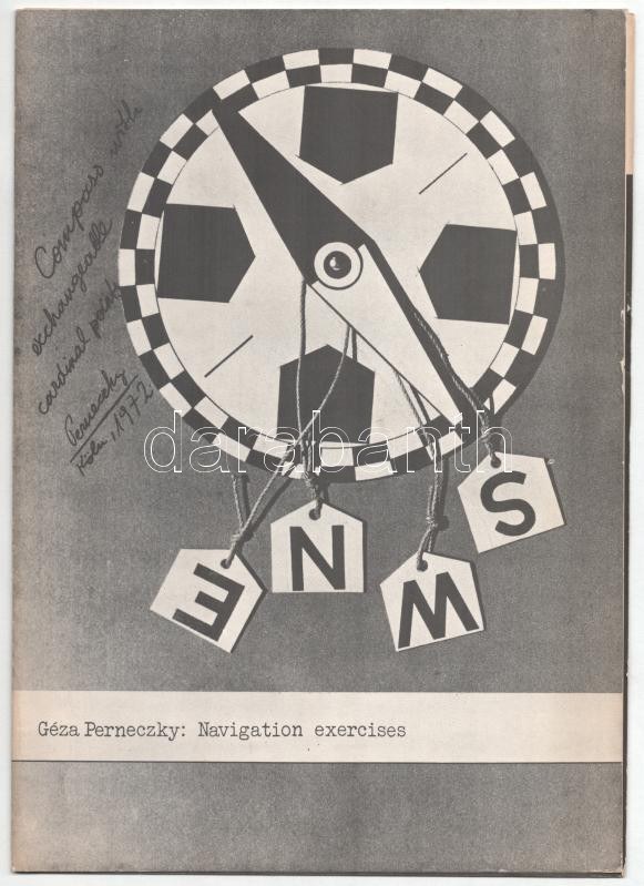 Géza Perneczky: Navigation excercises with the compass having exchangeable and leaveable cardinal points. A művész, Perneczky Géza (1936) Keszthely, 1936. május 21. -) Széchenyi-díjas művészettörténész, képző-, festőművész, író által aláírt példány. Köln 1972. Köln, 1972., Stüdstadtpresse-ny., 4+1 sztl. lev. Az önálló lap ceruzával jelzett. Kiadói papírmappa.