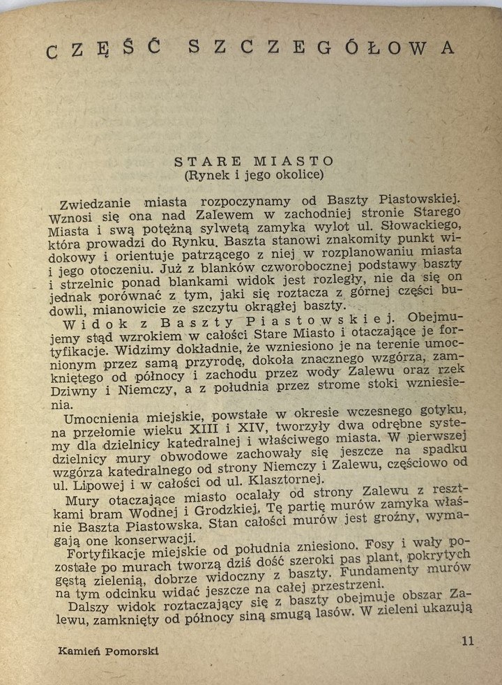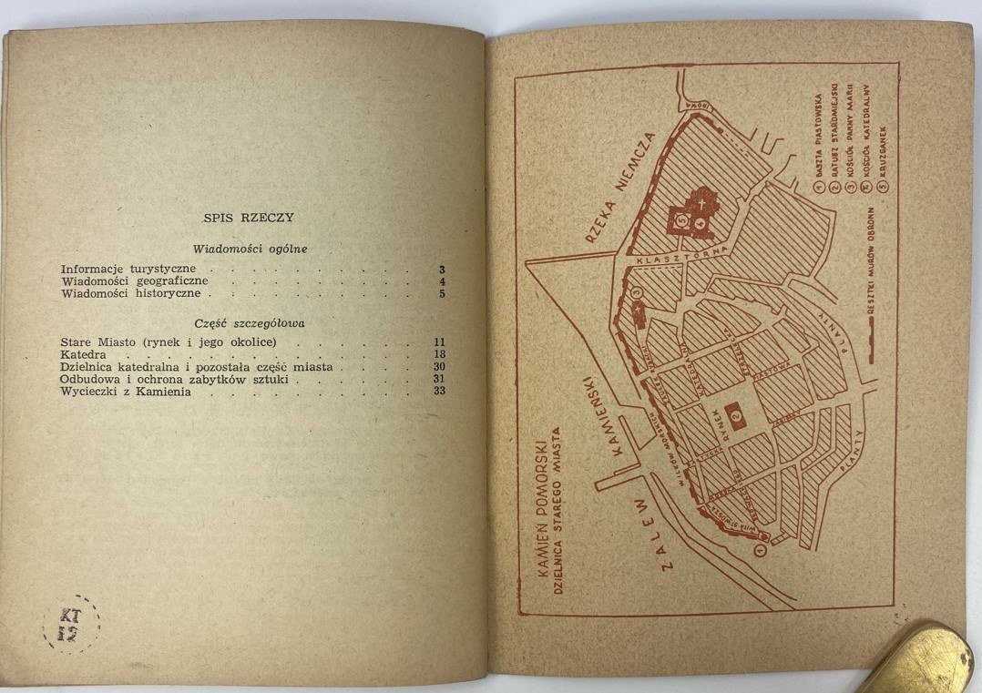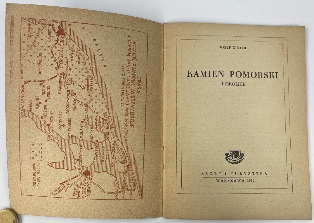 Ginter Józef, Kamień Pomorski i okolice, Sport i Turystyka, Warszawa 1953, s. 34, [2], wymiary 12,5 x 16,5 cm. Ilustracje w tekście. Okładka broszurowa, wydawnicza. Niewielkie otarcia okładki.