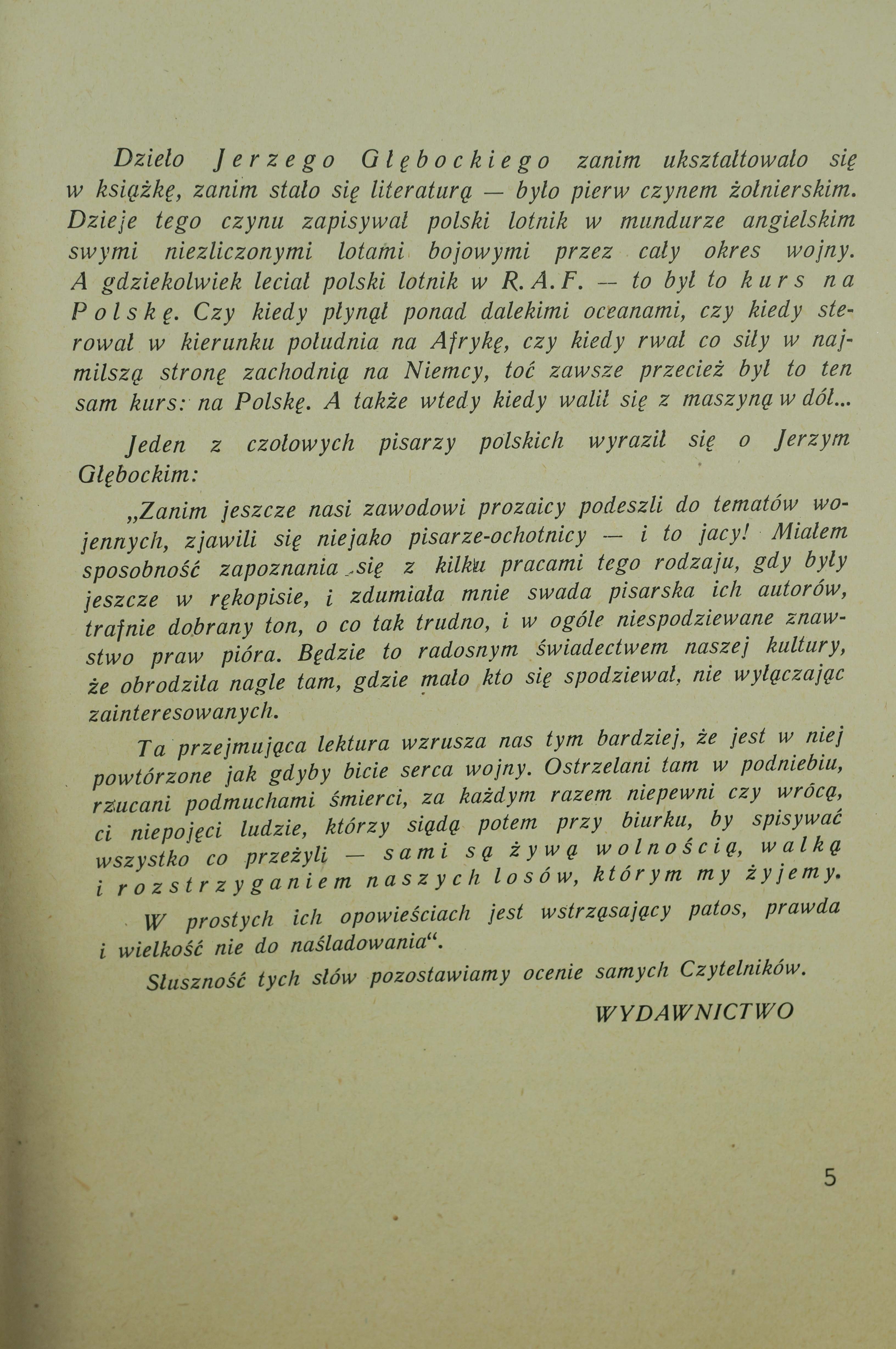 Kurs na Polskę. Reportaże i opowiadania lotnicze 1940-1945 - Jerzy Głębocki, nakładem księgarni św. Jacka w Katowicach, f. 15x21,5cm, s. 174