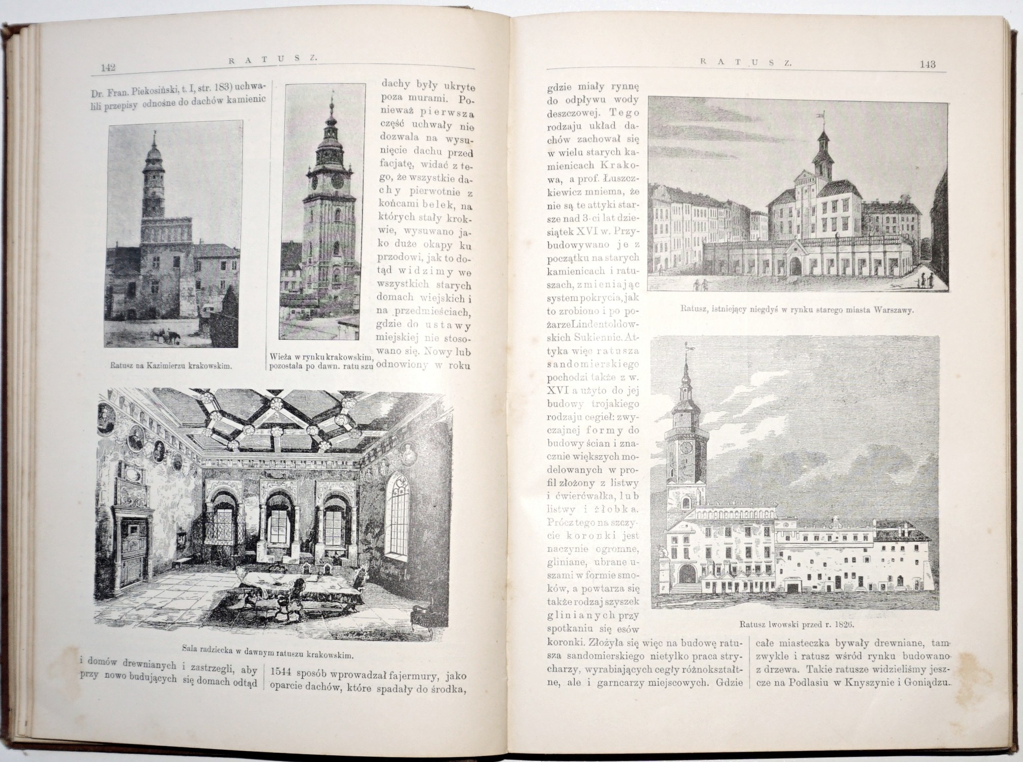 tekście liczne ilustracje, plany, rysunki, wśród nich wizerunki