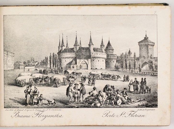 Prezentowany egzemplarz zaw. wszystkie 24 czarno-białe ryciny odbite w litografiach (form. ca 11x18,5 cm na kartach form ca 14,5x22,3 cm) z 2. wydania słynnego albumu J. N. Głowackiego. Pierwsza edycja ukazywała się zeszytami w l. 1832-1836, drugą wydano zapewne w 1848 bez podania daty druku. Ryciny pozostawiono bez zmian, modyfikacji uległ opis plansz autorstwa Konstantego Majeranowskiego – towarzyszący każdej rycinie po polsku i francusku. Zaw. następujące widoki: „Brama Floryańska, Zamek królewski z strony wschodnio-południowey, Rozwaliny Zamku Tęczyńskiego, Klasztór Tyniecki nad Wisłą, Pałac w Łobzowie, Zwaliska zamku Oycowa, Pustynia Stey Salomei na Grodzisku, Zamek Pieskowa Skała, Kościół Ś. Stanisława na Skałce, Zamek królewski s strony zachodniey, Kościół Katedralny na zamku, Alwernia, Rozwaliny Zamku w Lipowcu, Klastor X.X. Karmelitow Czerny, Kościół Śtey Anny, Pałac Wielopolskich, Pałac Woli Justowskiey, Klasztor X.X. Kamedułów na Bielanach, Góra Śtey Bronisławy z mogiłą Kościuszki, Kościół Panny Maryi, Kościół S. Piotra, Przedmieście Stradom, Wewnętrzna część zamku Królewskiego w Krakowie, Uniwersytet Jagielloński”. Szczegółowy opis albumu i okoliczności jego powstania zamieścił J. Banach w osobnym, obszernym rozdziale swojej pracy "Kraków malowniczy" (J. Banach II 28-82).