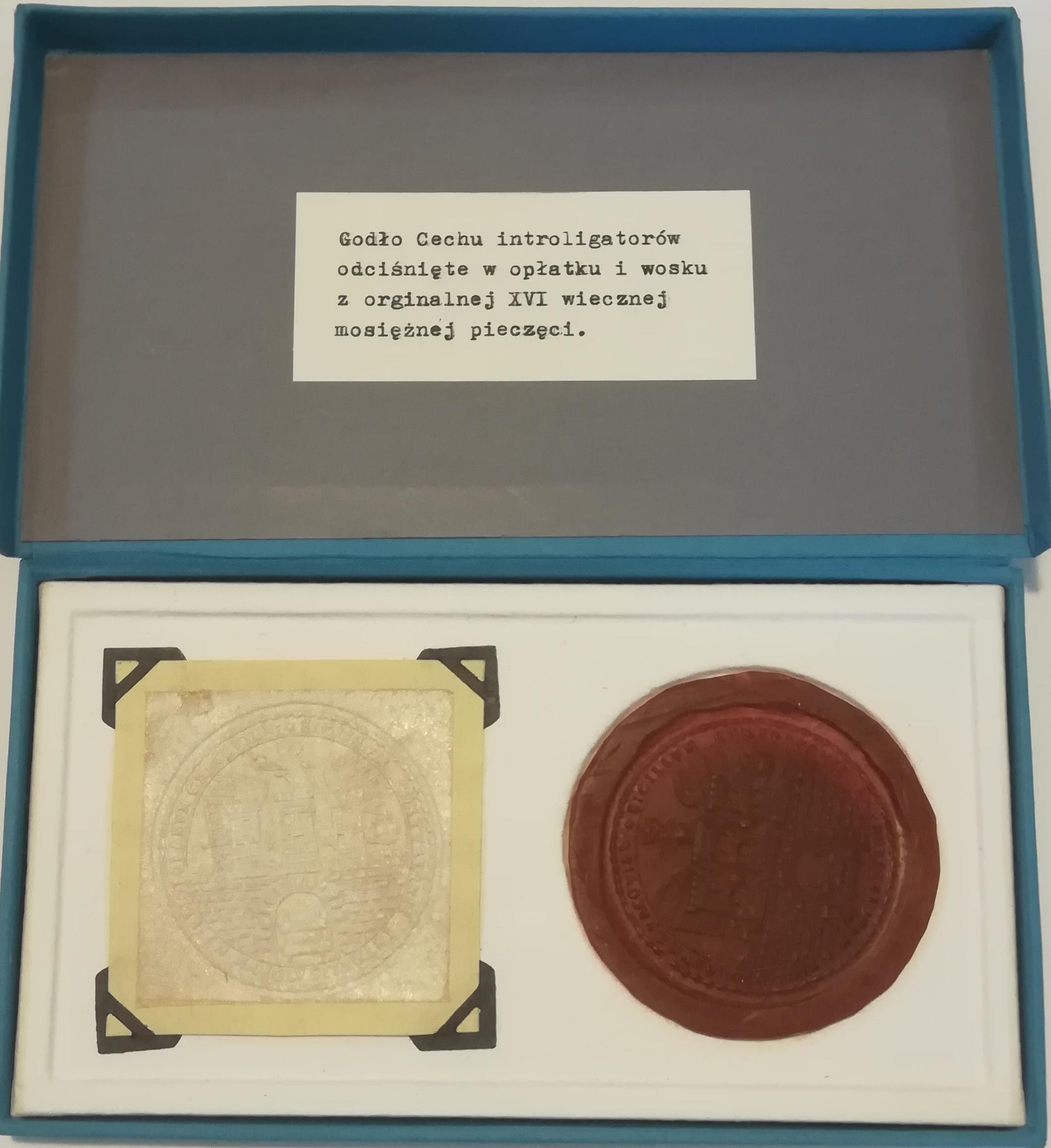 Odciśnięte w opłatku i wosku z oryginalnej XVI-wiecznej pieczęci. Odcisk współczesny o wym.:7 x7 cm.