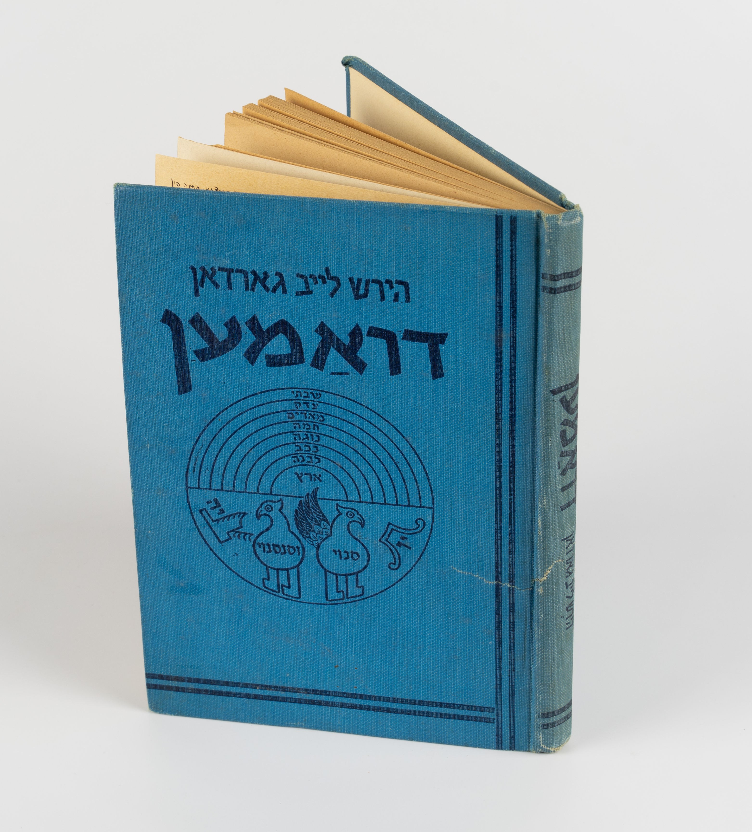 Tekst i liczbowanie stron w kierunku przeciwnym. Tekst i str. tytułowa w języku jidysz.