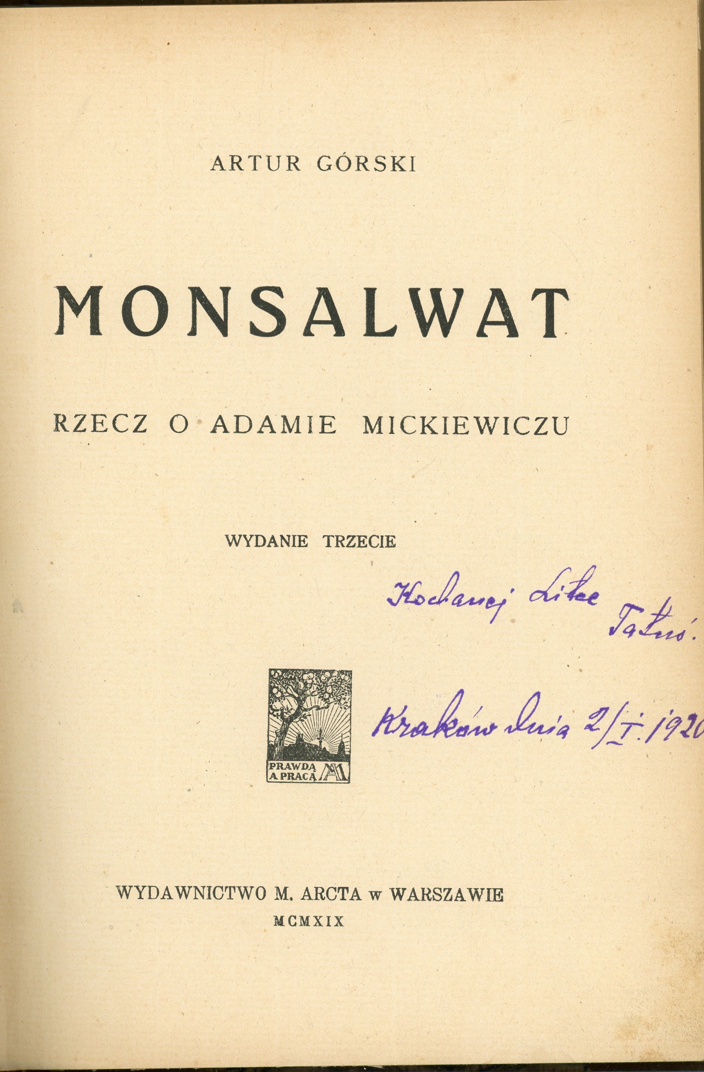 8, s. 226, [2], opr. ppł. z epoki. Na str. tytuł. obca dedykacja. Stan dobry.