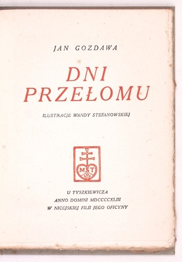 GOZDAWA[-MAŁĘCZYŃSKI] Jan - Dni przełomu. Ilustracje Wandy Stefanowskiej. Nicea 1943. U Tyszkiewicza, w nicejskiej filii jego Oficyny. 16d, s. 47, [4]. opr. oryg. kart., futerał kart.