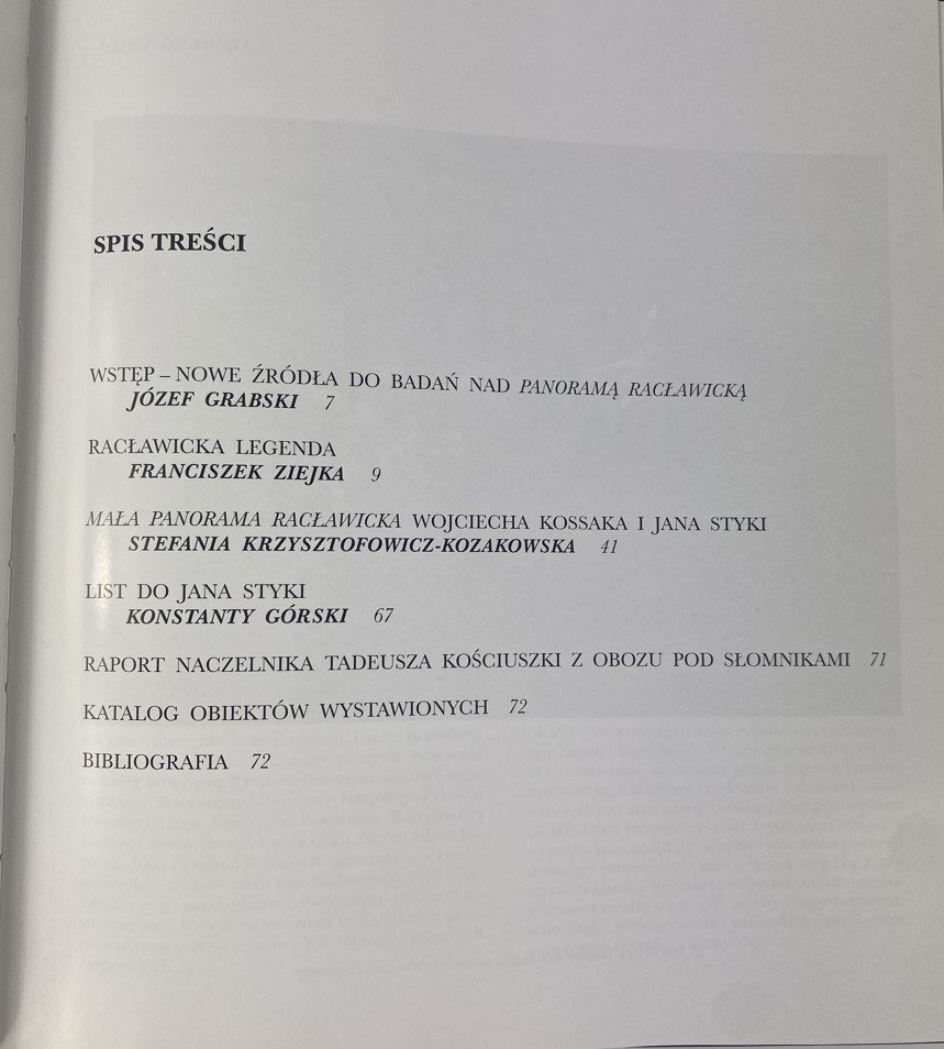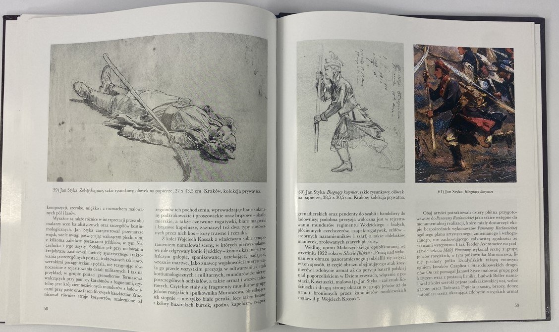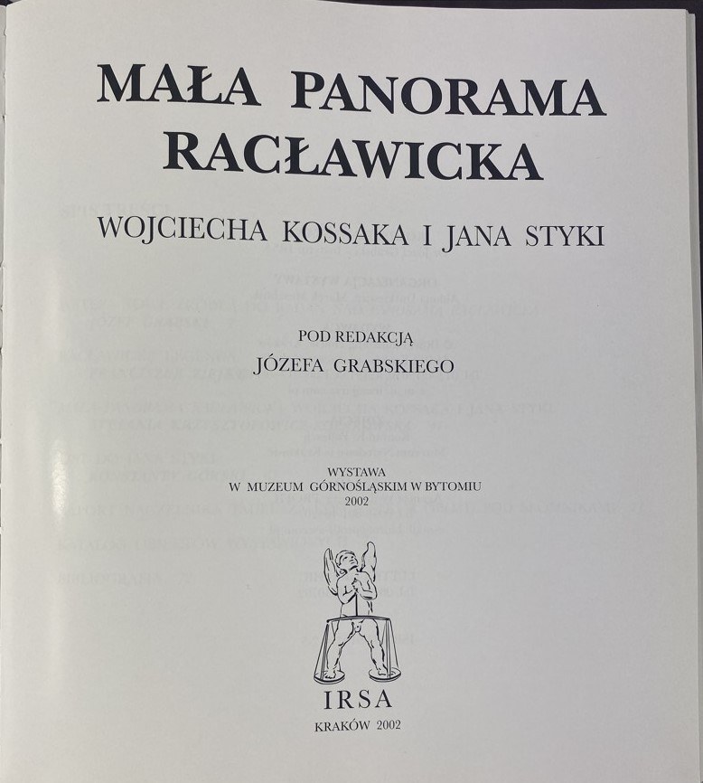 Grabski Józef, Mała Panorama Racławicka Wojciecha Kossaka i Jana Styki: wystawa w Muzeum Górnośląskim w Bytomiu, 2002 / pod red. Józefa Grabskiego, "Irsa", Kraków 2002, s. 72, wymiary 23,5 x 26 cm. Okładka twarda, wydawnicza.
