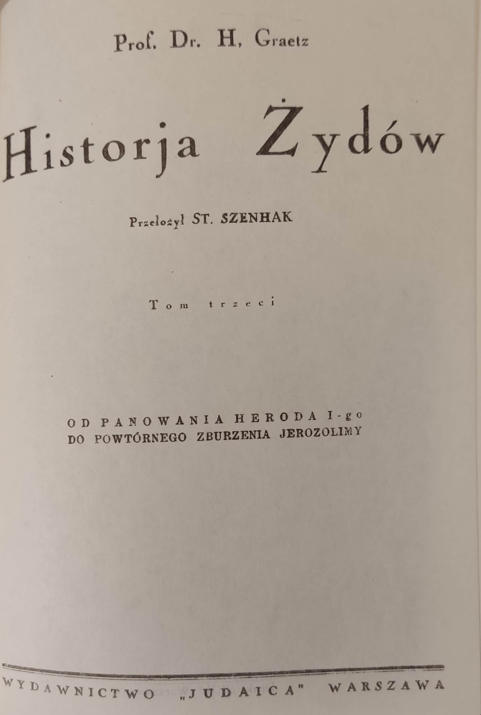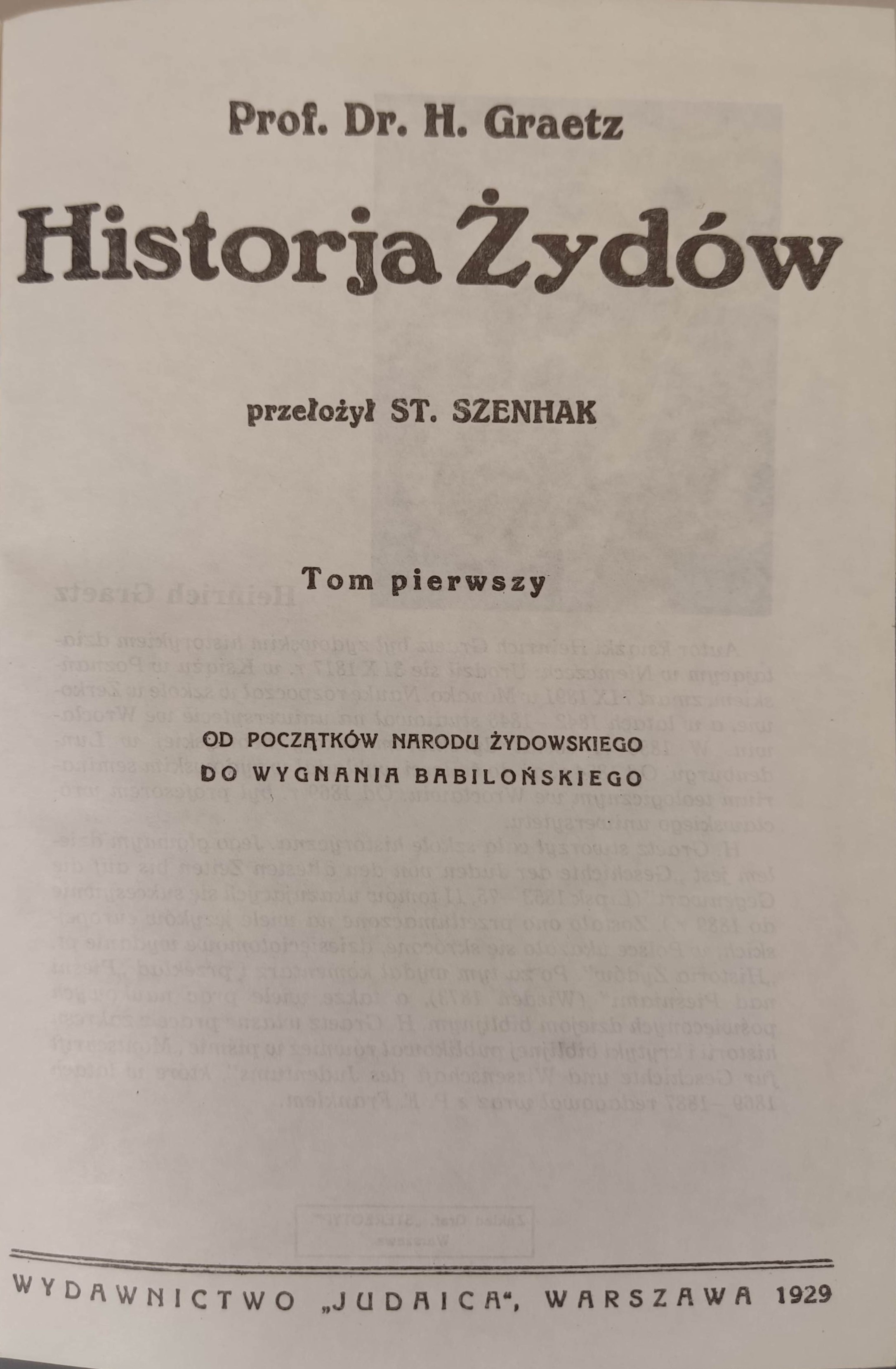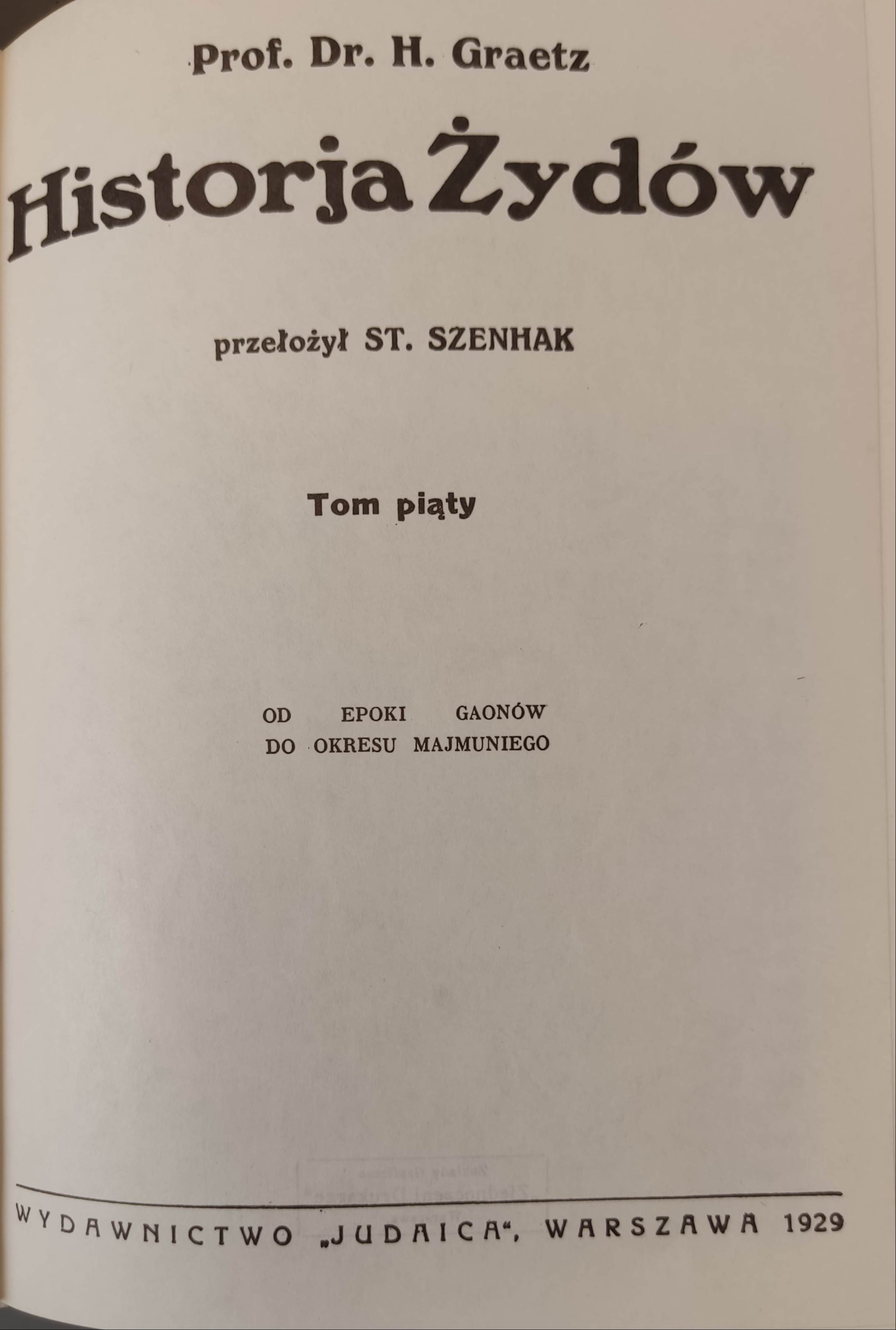 GRAETZ H. - HISTORJA ŻYDÓW Tom I - IX w 3 woluminach Reprint