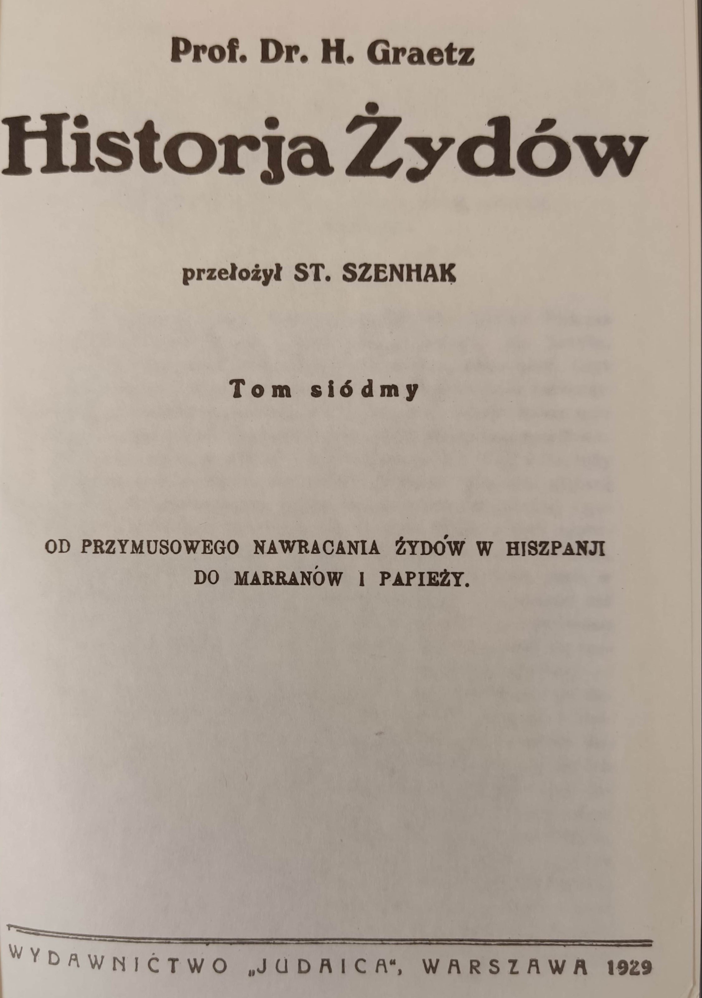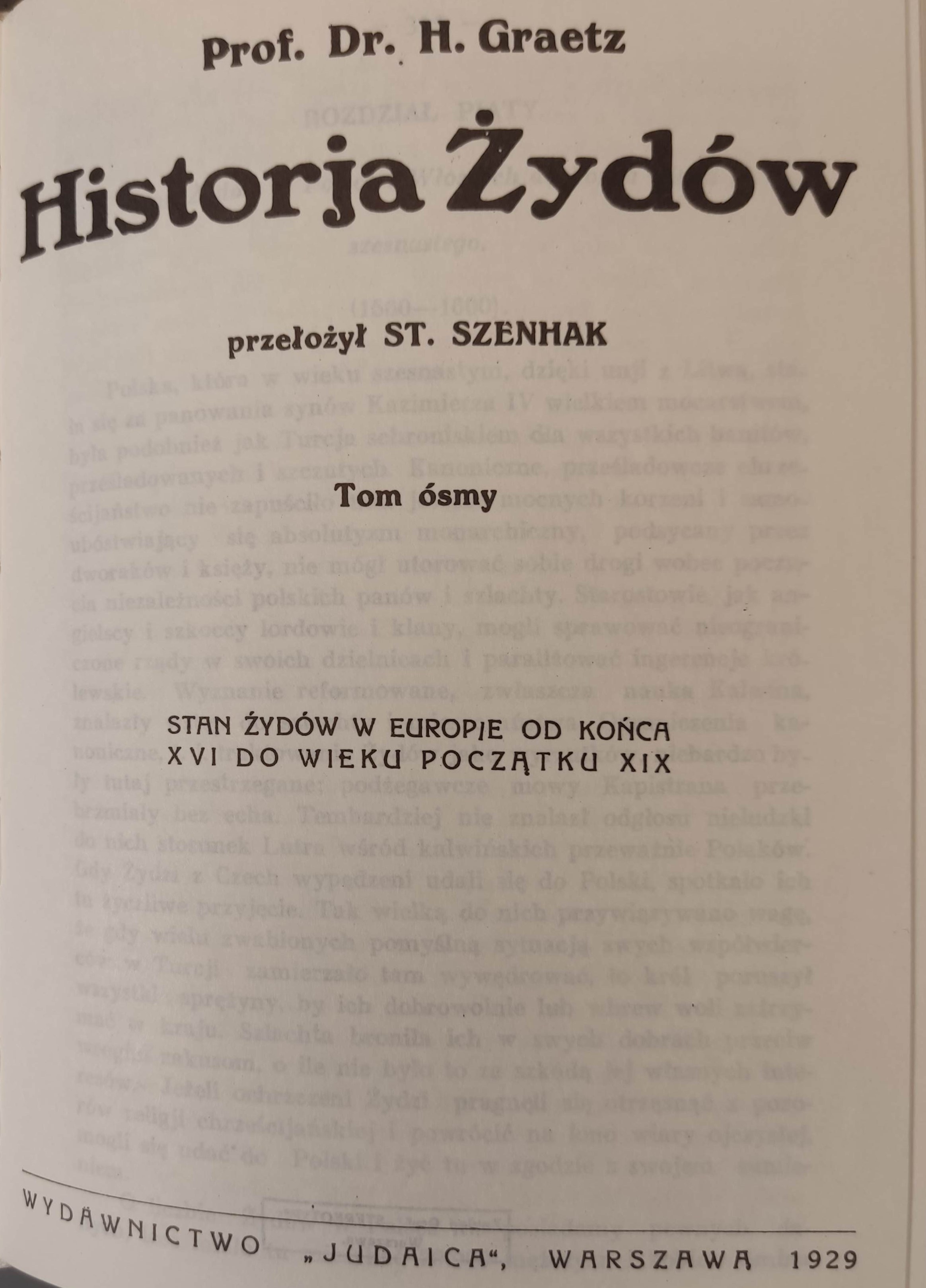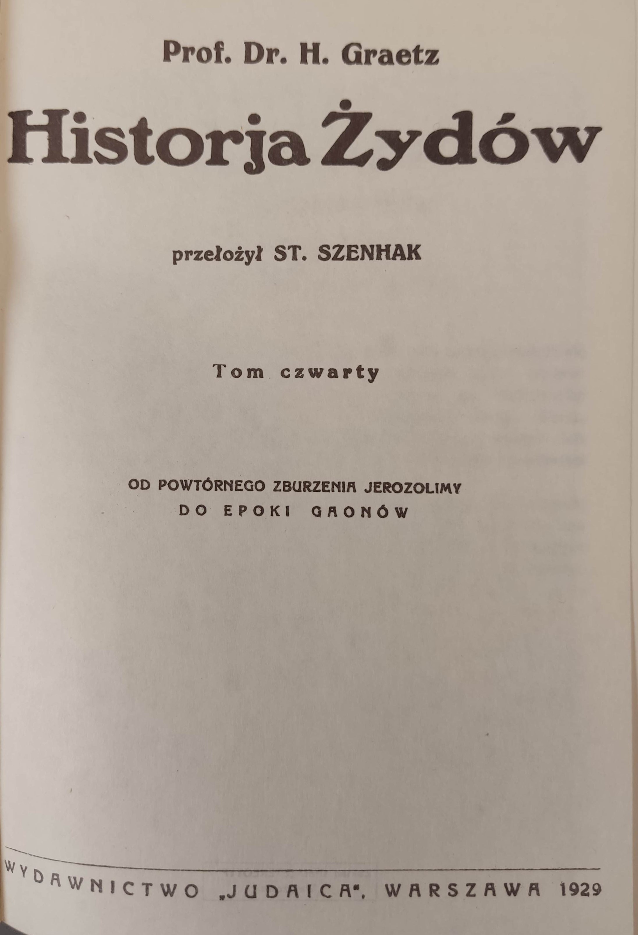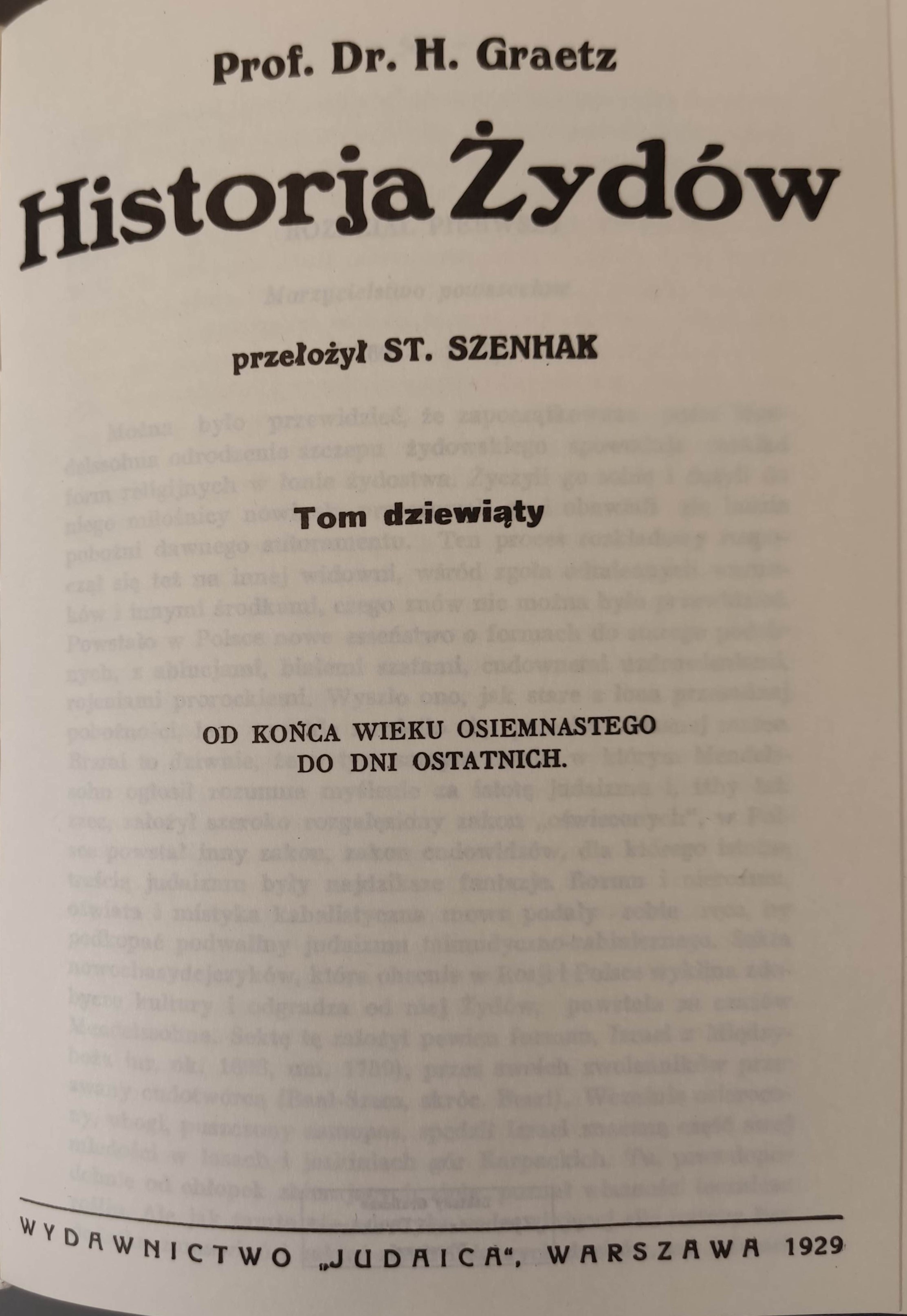 GRAETZ H. - HISTORJA ŻYDÓW Tom I - IX w 3 woluminach Reprint