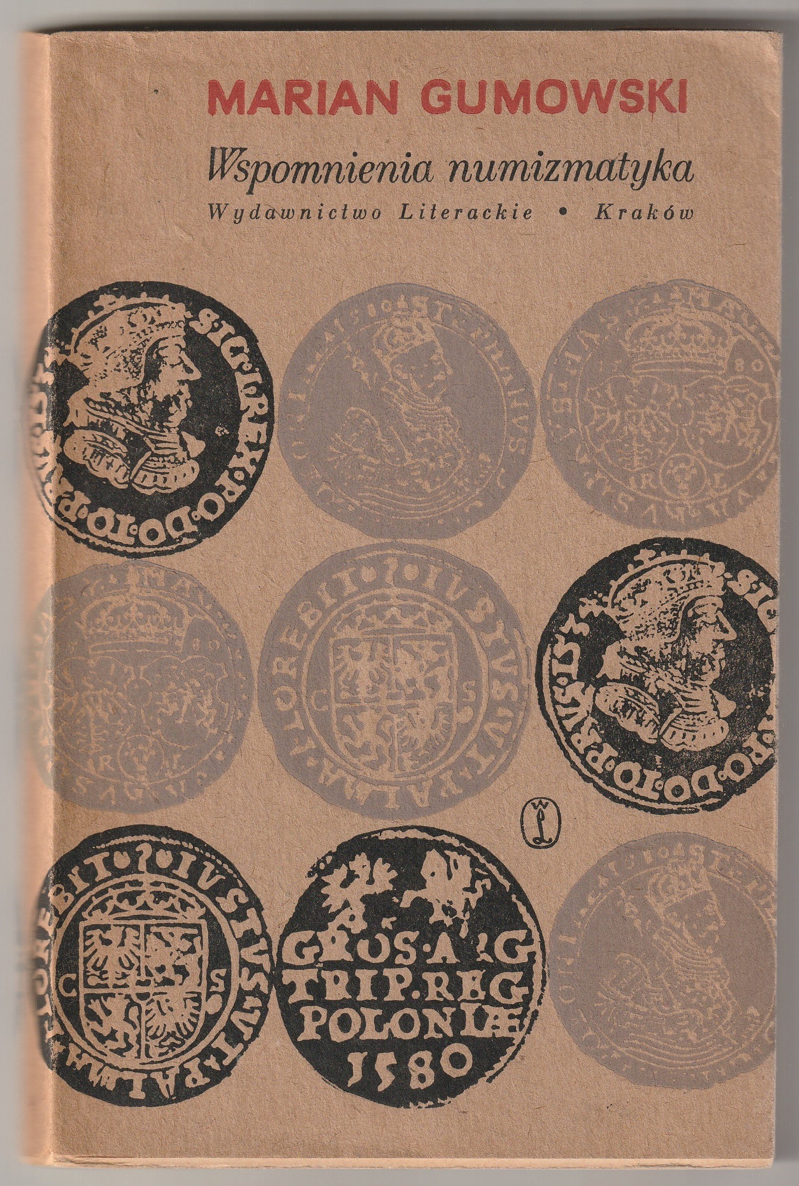 GUMOWSKI Marian. Wspomnienia numizmatyka, Wydawnictwo Literackie, Kraków 1965, str. 152, fot. cz.-b.; oprawa miękka z obwolutą, drobne zabrudzenia brzegów stron, st. bdb.; wym. ok. 125x195 mm.