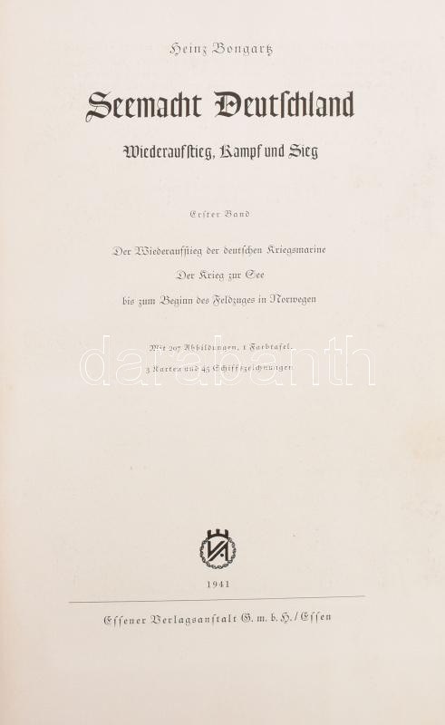 Heinz Bongart: Seemacht Deutschland. Essen 1941 Essener Verlagsanstalt, Kiadói vászonkötésben, 281p. számos illusztrációval, a német hajóflotta hajóinak bemutatásával 45 rajzon + térképmelléklet. Néhány oldal foltos