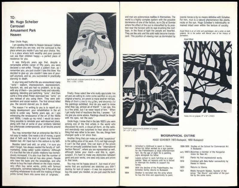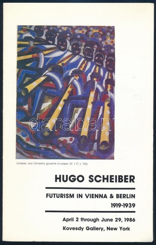 Hugo Scheiber. Futurism in Vienna & Berlin 1919-1939. April 2 through June 29, 1986. Kiállítási katalógus. New York, 1986, Paul Kövesdy Gallery. Angol nyelven. A művész, Scheiber Hugó (1873- 1950) nagyrészt fekete-fehér képeivel és két színes képével illusztrált. Kiadói papírkötés. Paul Kövesdy (1923-2017) nemzetközi műkereskedő, művészeti író, elévülhetetlen érdemeket szerzett a magyar avantgárd festők nyugaton való elismertetésében. Ritka. / Paperbinding, in English. Rare.
