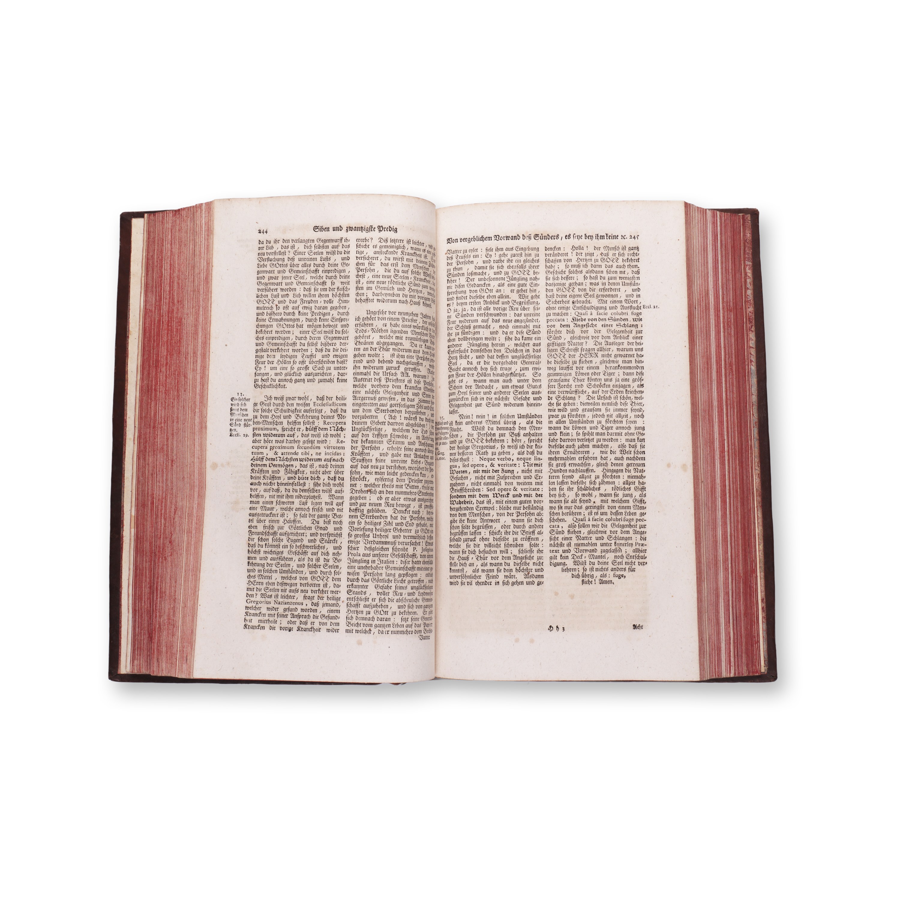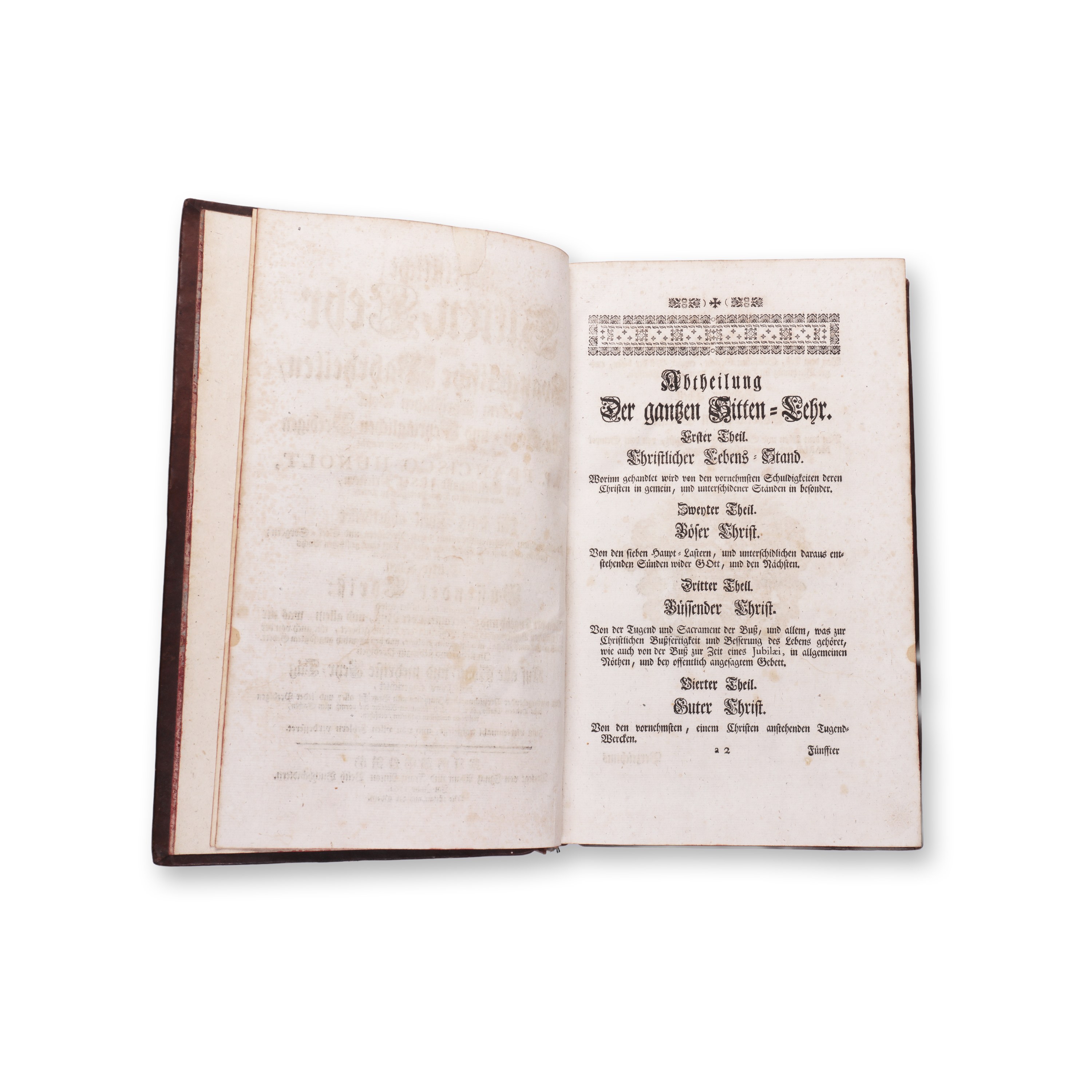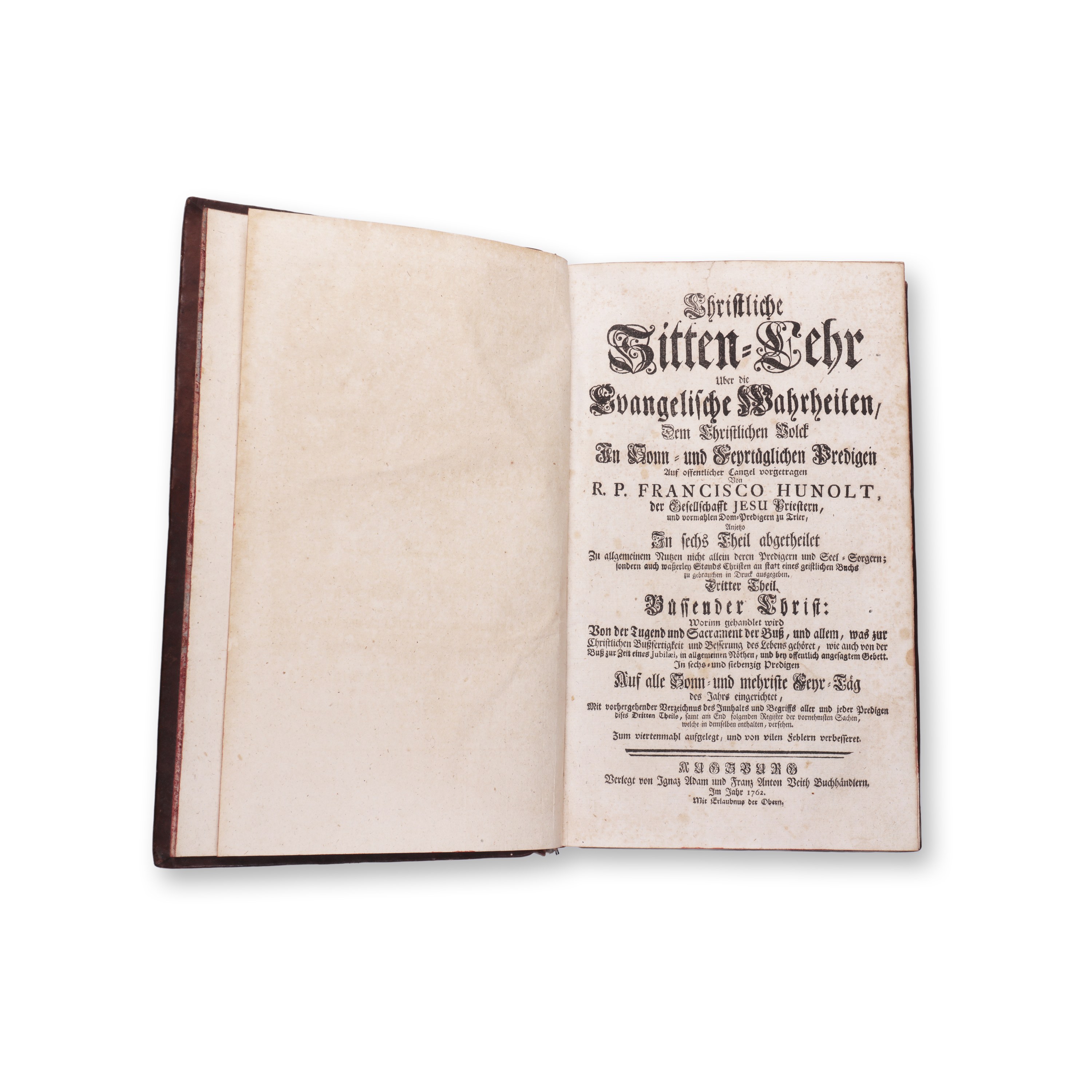 1762 | PUBLISHER: Augsburg, Ignaz Adam und Franz Anton Veith | NUMBER OF PAGES: 728 | LANGUAGE: German | DIMENSIONS: 346 x 225 mm | THE FULL TITLE OF THE WORK: Christliche Sittenlehre ueber die evangelischen Wahrheiten dem christlichen Volke in Sonn - , Festtags - und Gelegenheits - Predigten auf offentlicher Cantzel vorgetragen. Dritter Theil | CONDITION: insect damage