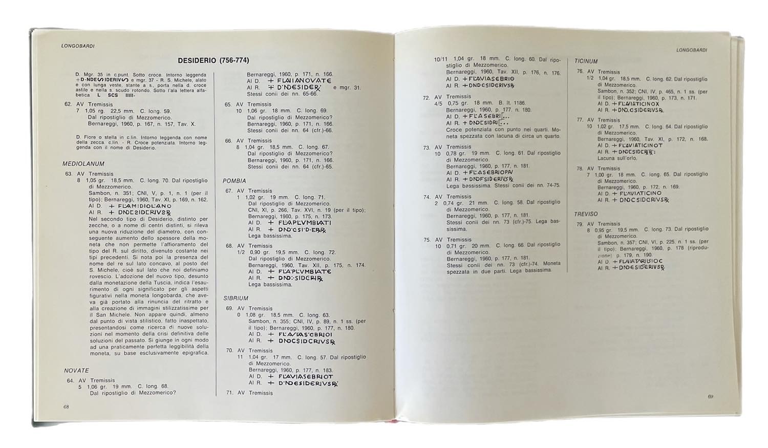 I Longobardi e la Lombardia, Le Monete di Ostrogoti Longobardi e Vandali, Ermanno Arslan. Milano 1978. Copertina rigida, 91 pagine, 22 tavole. Opera fondamentale per lo studio e la classificazione delle monete degli ostrogoti, longobardi e vandali. Edizione esaurita e rara.