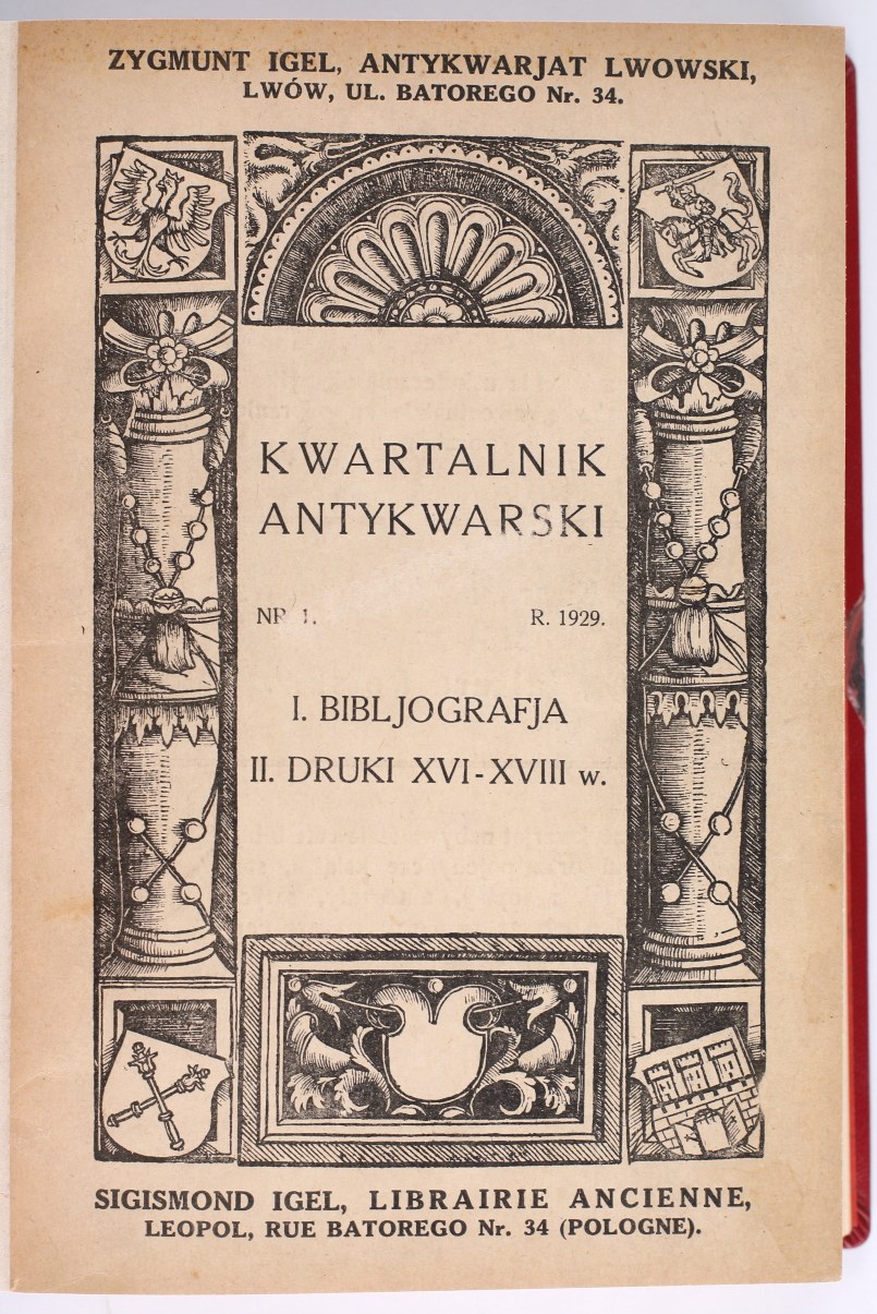 IGIEL Zygmunt - Kwartalnik Antykwarski. Nr 1 - 5. Lwów 1929-1932. Zestaw katalogów [oprawa Marek Bauer]
