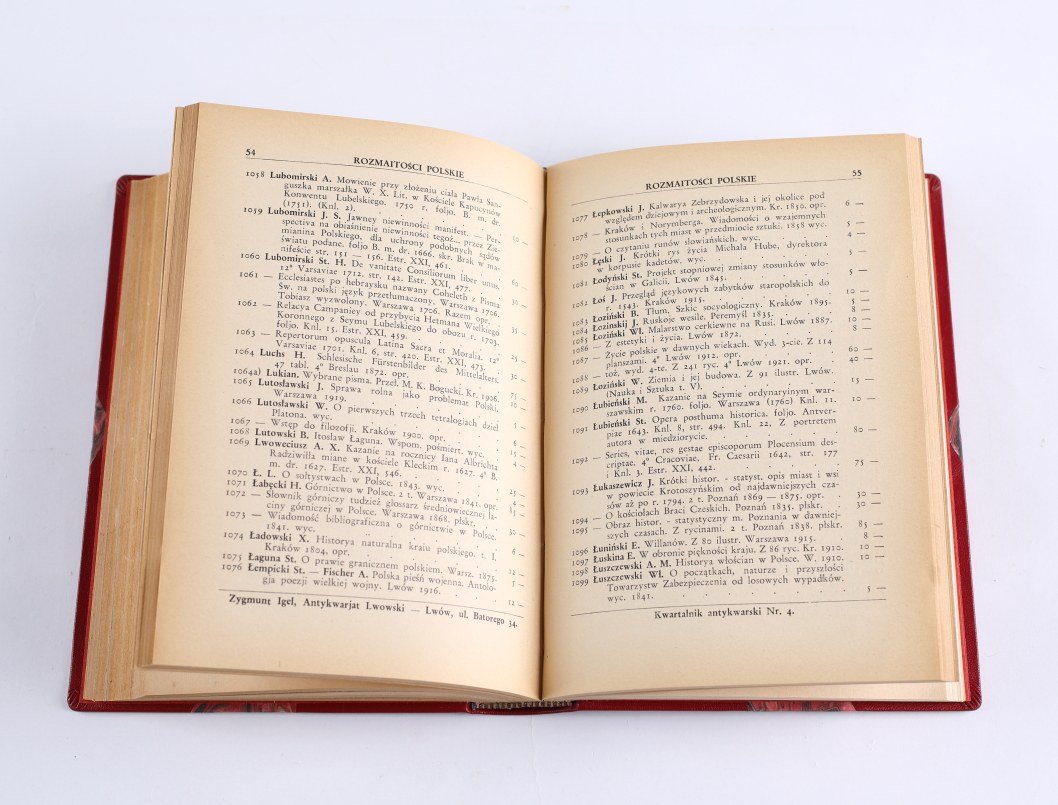 Zawiera m. in. następujące pozycje: Bibljografia; Druki XVI-XVIII w.; Kultura Polski; Historja Polski; Rozmaitości Polskie (dwie serie).