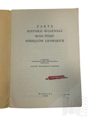 Władysław Karpiński – „Zarys Historji Wojennej Pułków Polskich 1918-1920: 39 Pułk Strzelców Lwowskich.” Wydanie oryginalne. Oprawa wydawnicza, liczba stron nie podana. Szczegółowe opracowanie poświęcone historii 39 Pułku Strzelców Lwowskich w latach 1918–1920, przygotowane jako kompendium dla miłośników historii wojskowości.