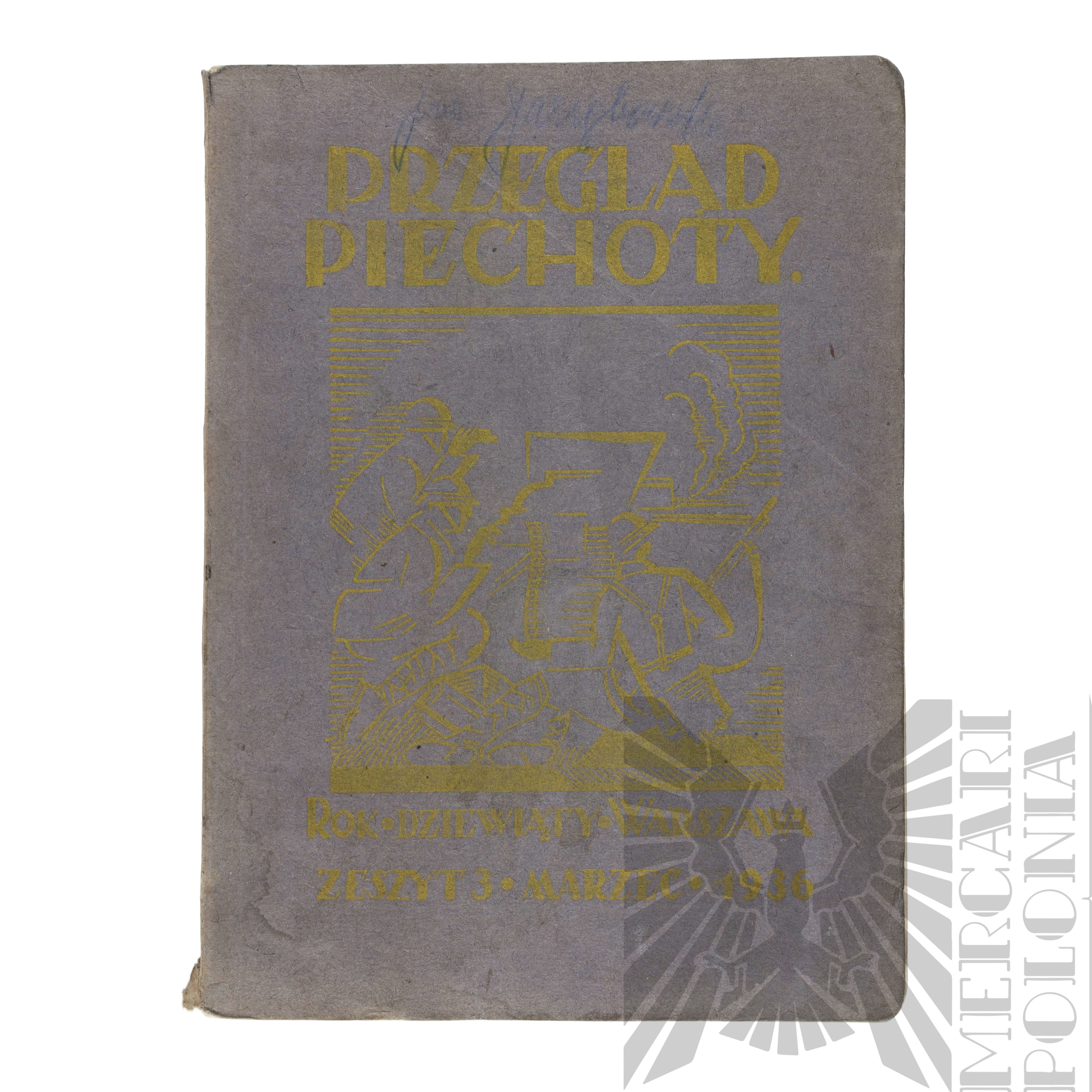 Miesięcznik wojskowy “Przegląd Piechoty” zeszyt 3 wydany w marcu 1936 roku przez Departament Piechoty, Sekcję Piechoty Towarzystwa Wiedzy Naukowej i Wojskowy Instytut Naukowo-Wydawniczy. Okładka miękka, 134 strony, na okładce podpis nieznanego porucznika. Stan ogólny widoczny na zdjęciach.