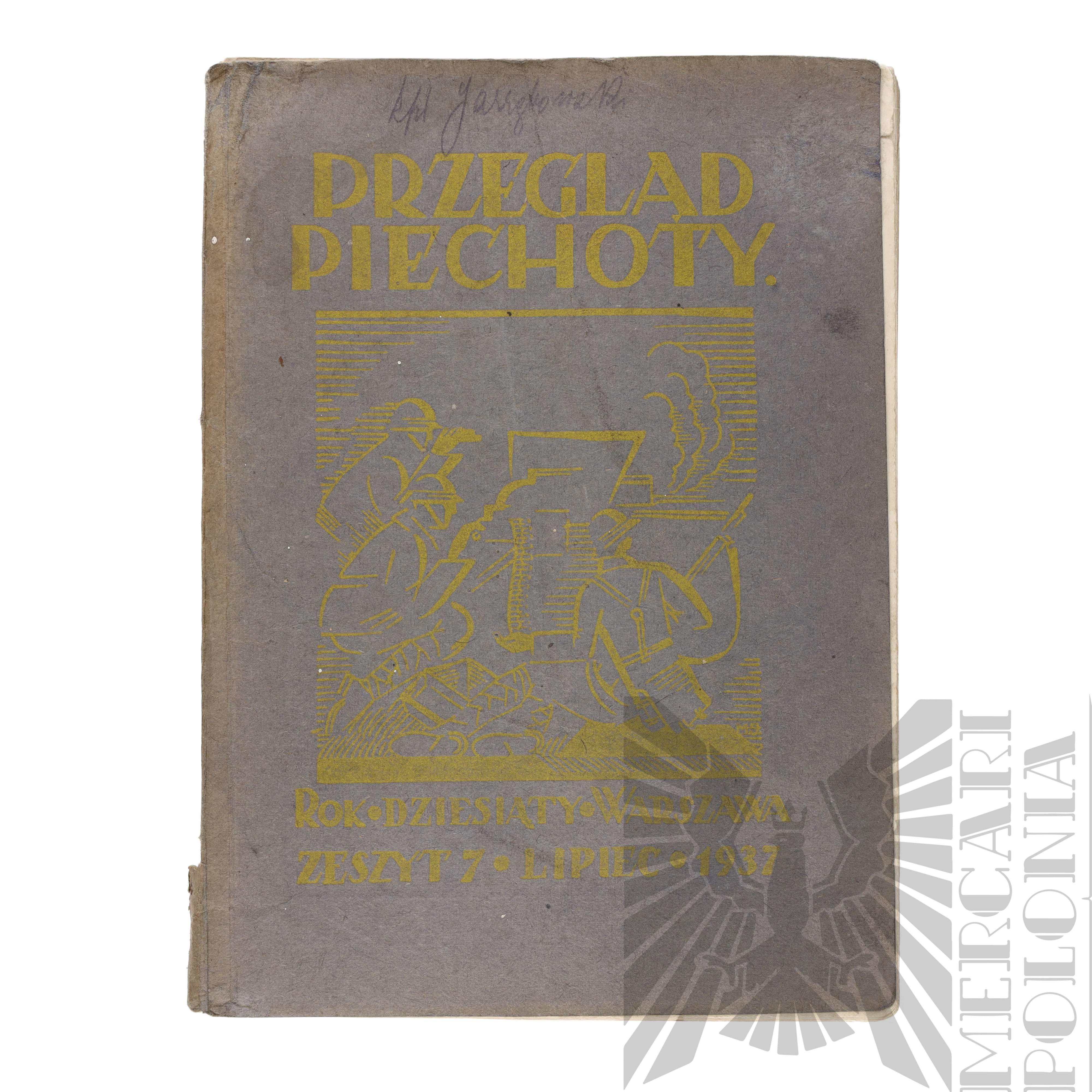 Miesięcznik wojskowy “Przegląd Piechoty” zeszyt 7 wydany w lipcu 1937 roku przez Departament Piechoty, Sekcję Piechoty Towarzystwa Wiedzy Naukowej i Wojskowy Instytut Naukowo-Wydawniczy. Okładka miękka, 127 stron, na okładce nieczytelny podpis. Stan ogólny widoczny na zdjęciach.