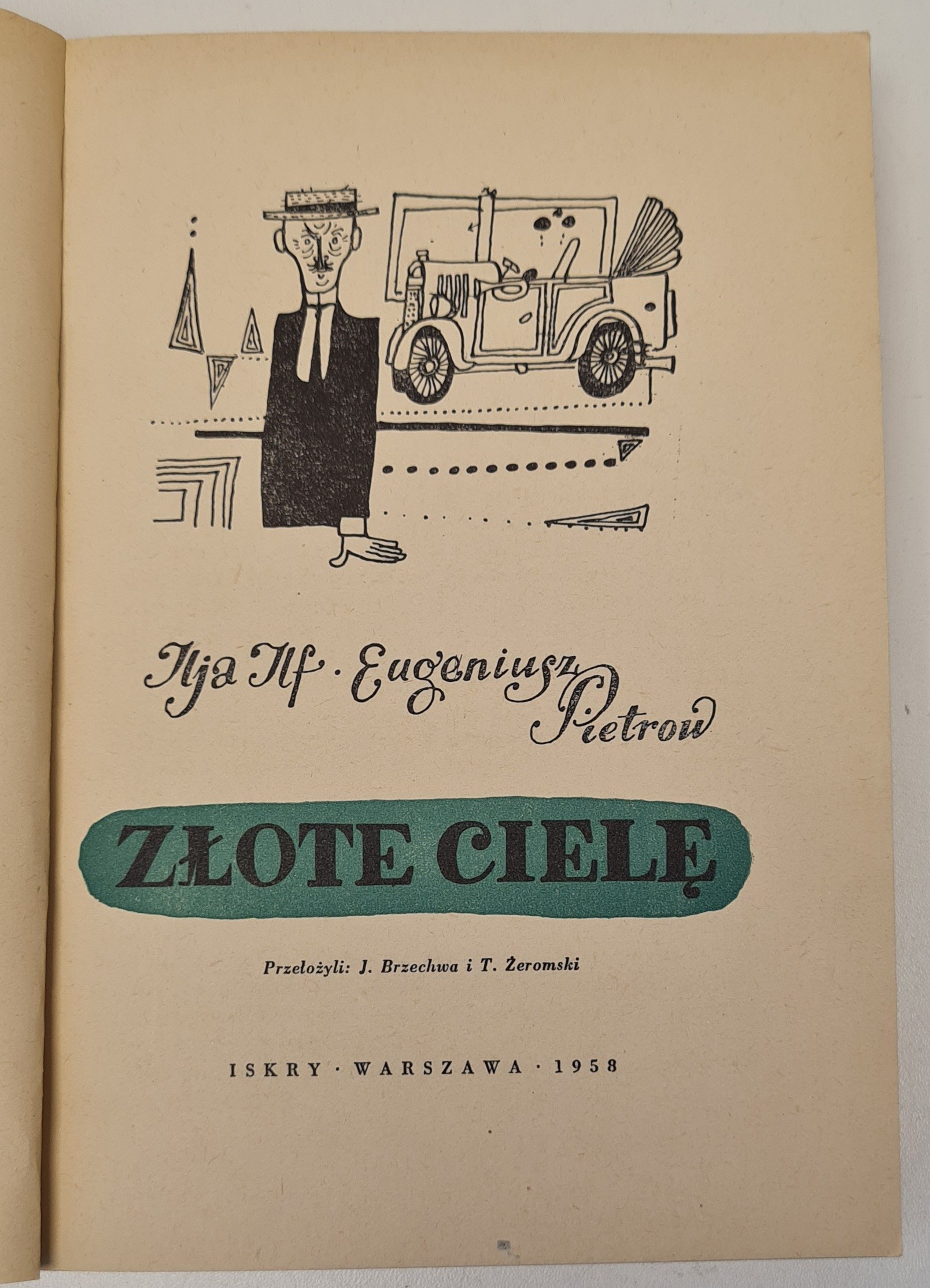 ILF ILJA ; PIETROW EUGENIUSZ - Złote cielę. Warszawa 1958. Wyd. „Iskry”. Druk. Dom Słowa Polskiego. Wym.14cmx20cm. s. 401,. Oprawa broszurowa wydawnicza.Ogólny stan zachowania bardzo dobry.