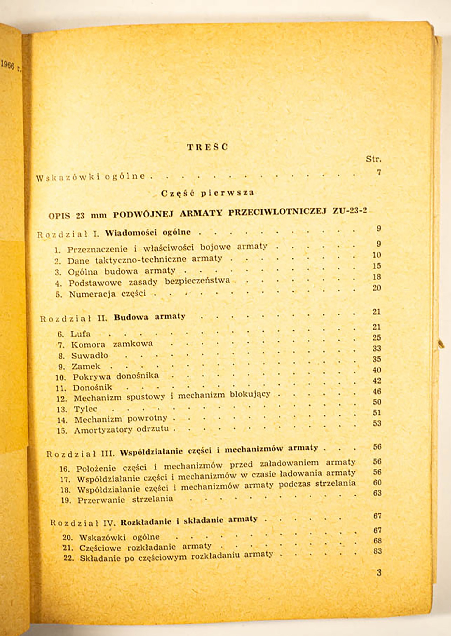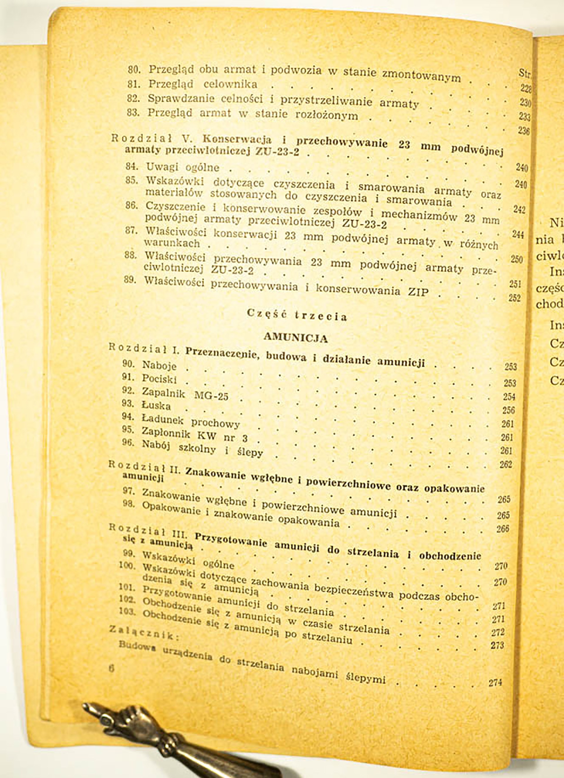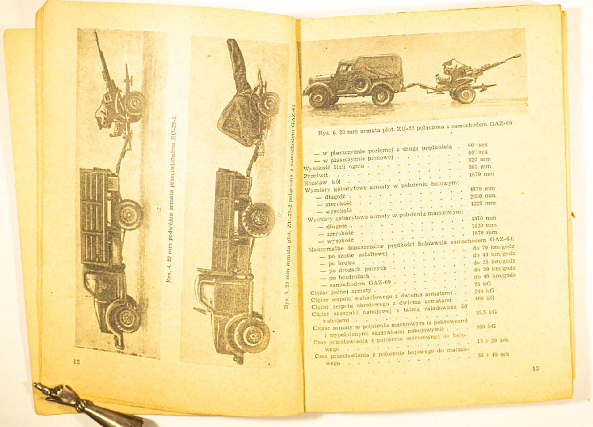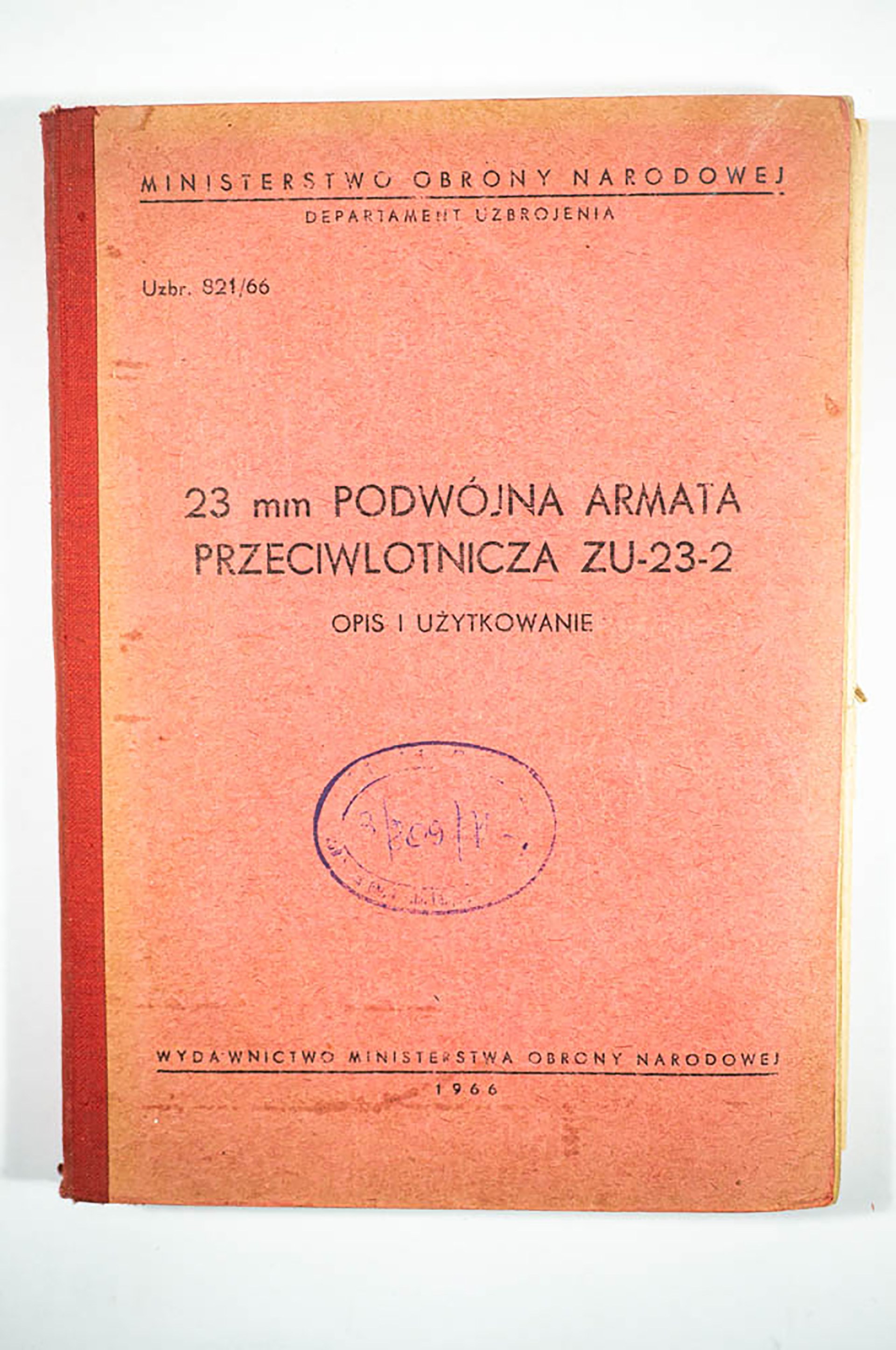 23mm PODWÓJNA ARMATA PRZECIWLOTNICZA ZU-23-2. Opis i użytkowanie - Ministerstwo Obrony Narodowej. Departament Uzbrojenia, 1966r. 15 x 20,5cm, s. 275