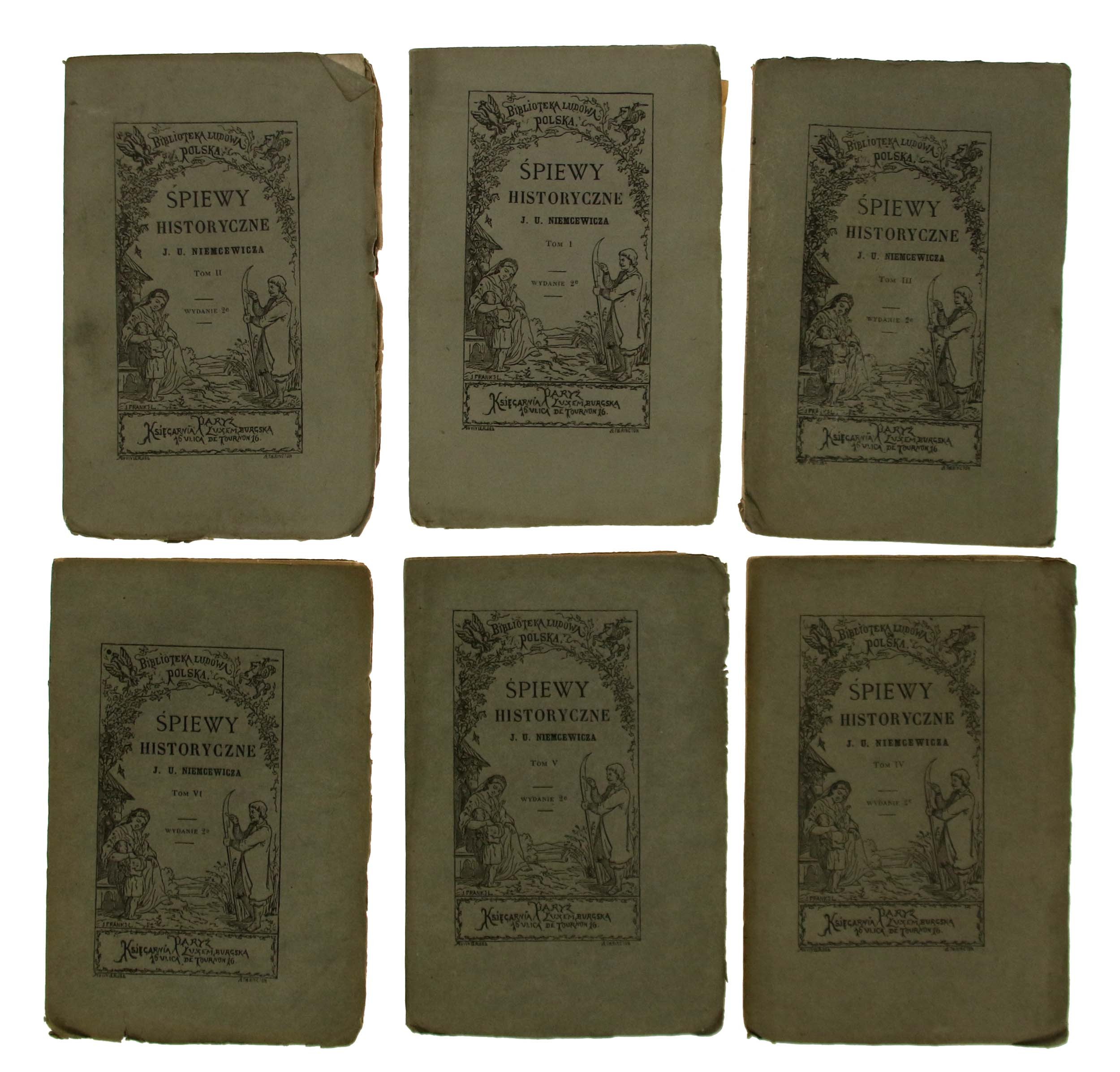 J. U. Niemcewicz - Śpiewy historyczne. Tomy I-VI. Wydanie II. Księgarnia Luxemburska, Paryż XIX w.