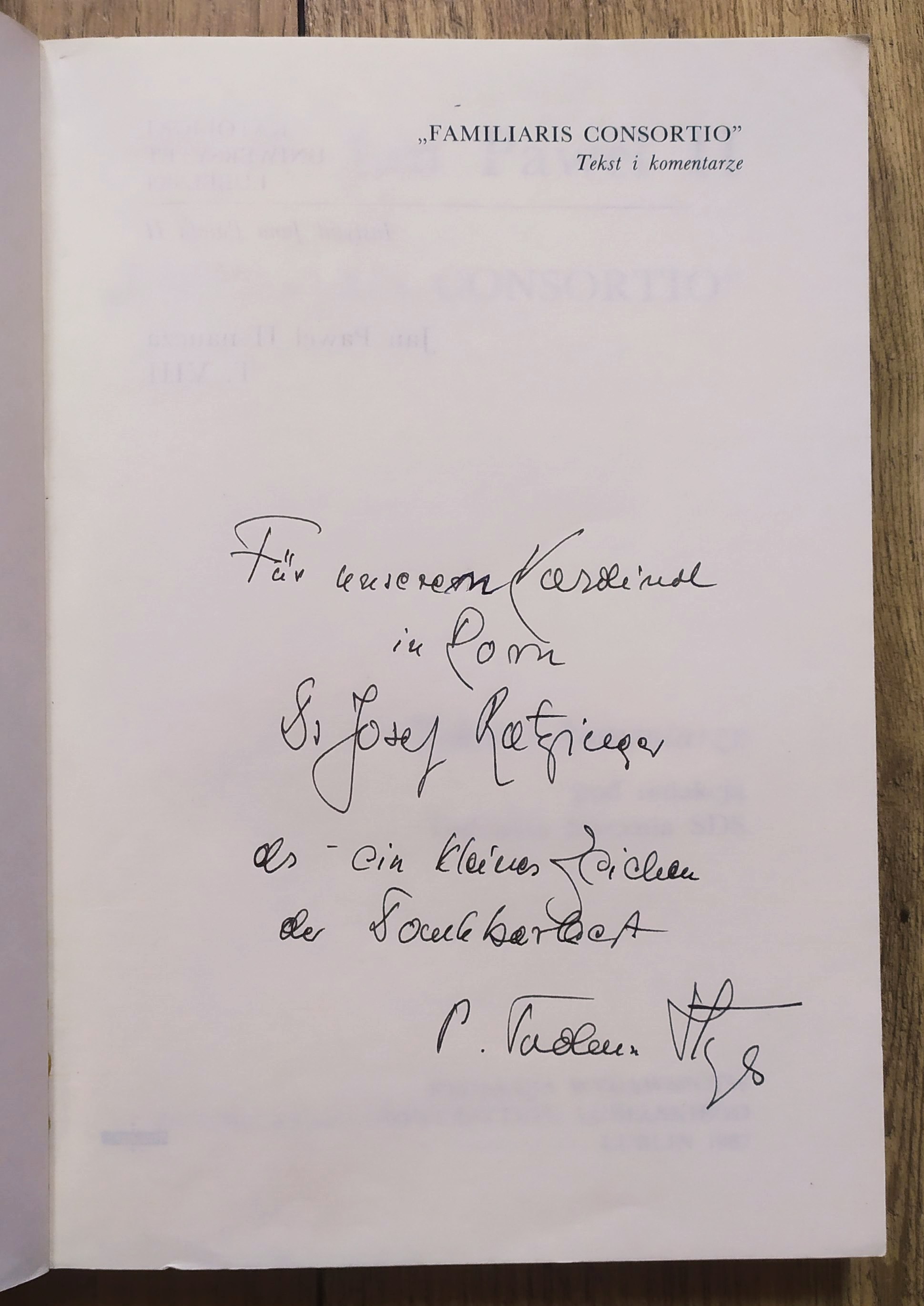 Uwagi: na pierwszej stronie odręczna dedykacja Tadeusza Stycznia dla Josefa Ratzingera.