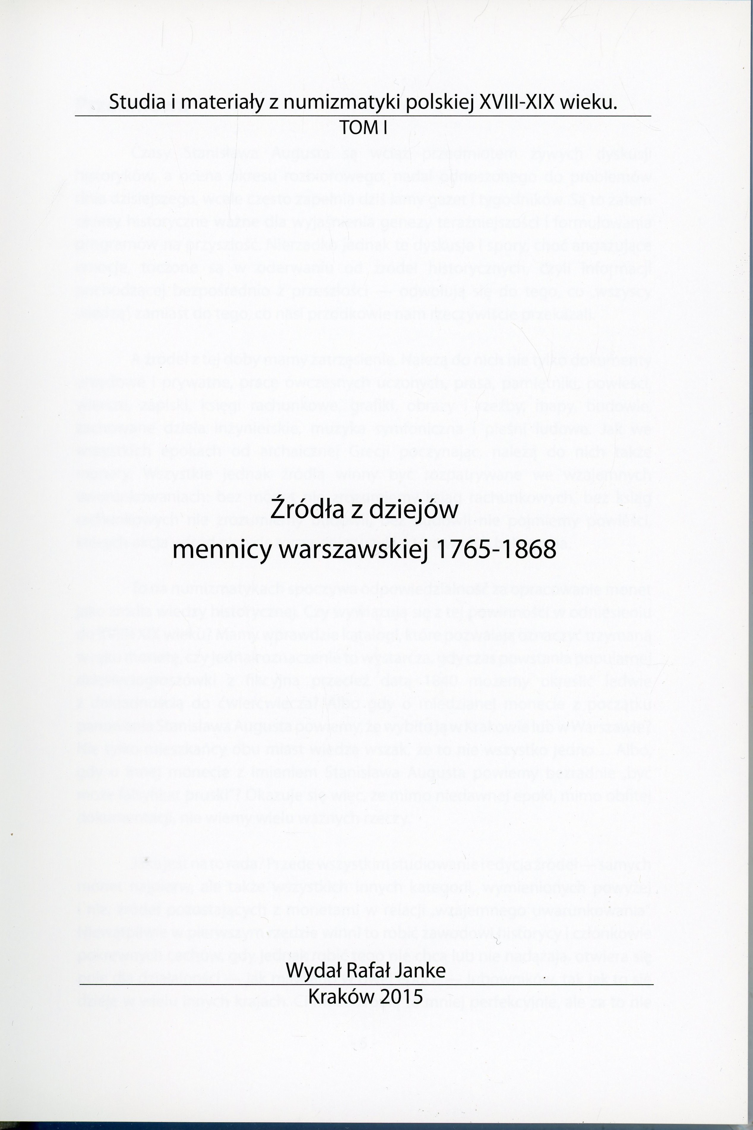 materiały z numizmatyki polskiej XVIII - XIX wieku. T.1. Stan bardzo dobry.