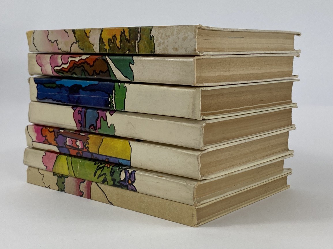 Jansson Tove, 7 tom z serii Muminki, nakł. Nasza Księgarnia, Warszawa 1975 - 1980, wymiary 12,5 x 17 cm. Ilustracje autorki. Projekt okładki i strony tytułowej Włodzimierz Terechowicz. Okładki twarde, wydawnicze, z przetarciami, lekkimi przybrudzeniami.