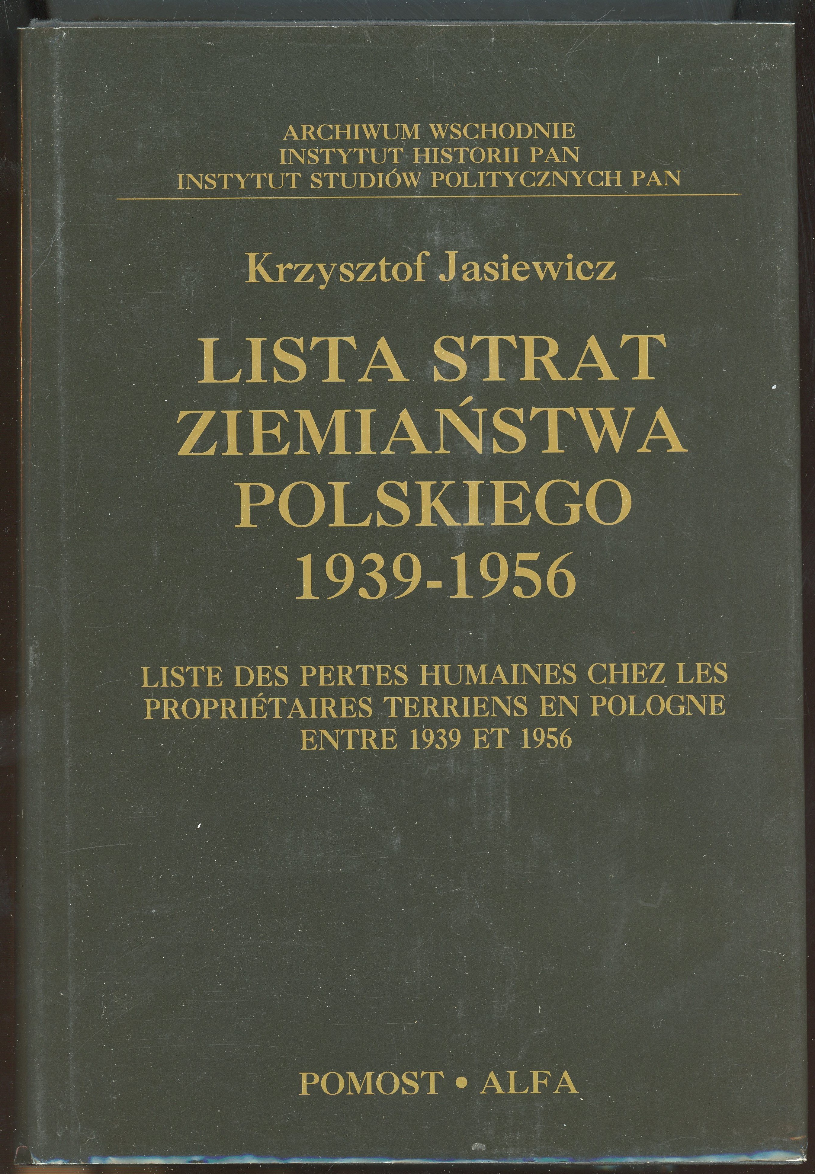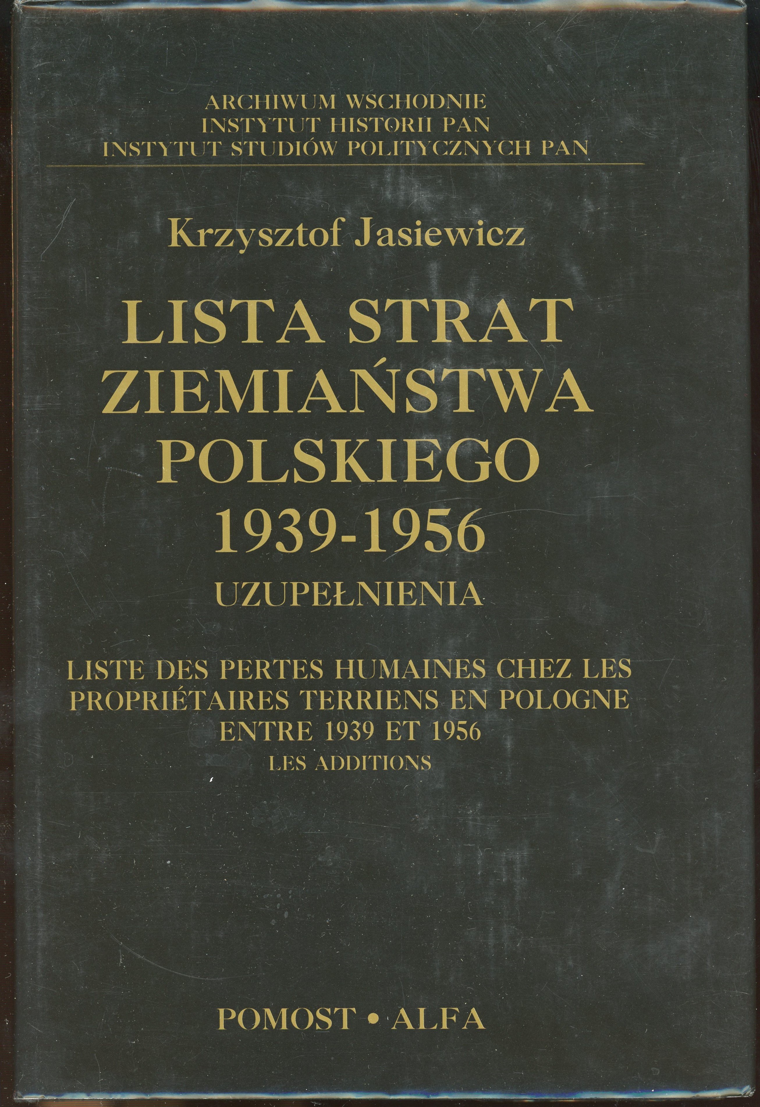 Jasiewicz Krzysztof - Lista strat ziemiaństwa polskiego 1939-1956. T. 1-2. Warszawa 1995 Pomost-Alfa.