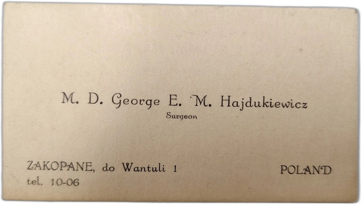 Jerzy Hajdukiewicz (1918 -1989) - karta wizytowa, Zakopane ok. 1946