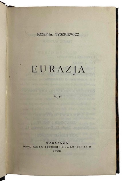 Józef hr. Tyszkiewicz - Eurazja, książka wydana w 1928 roku w Warszawie, druk Jan Świętoński i S-ka