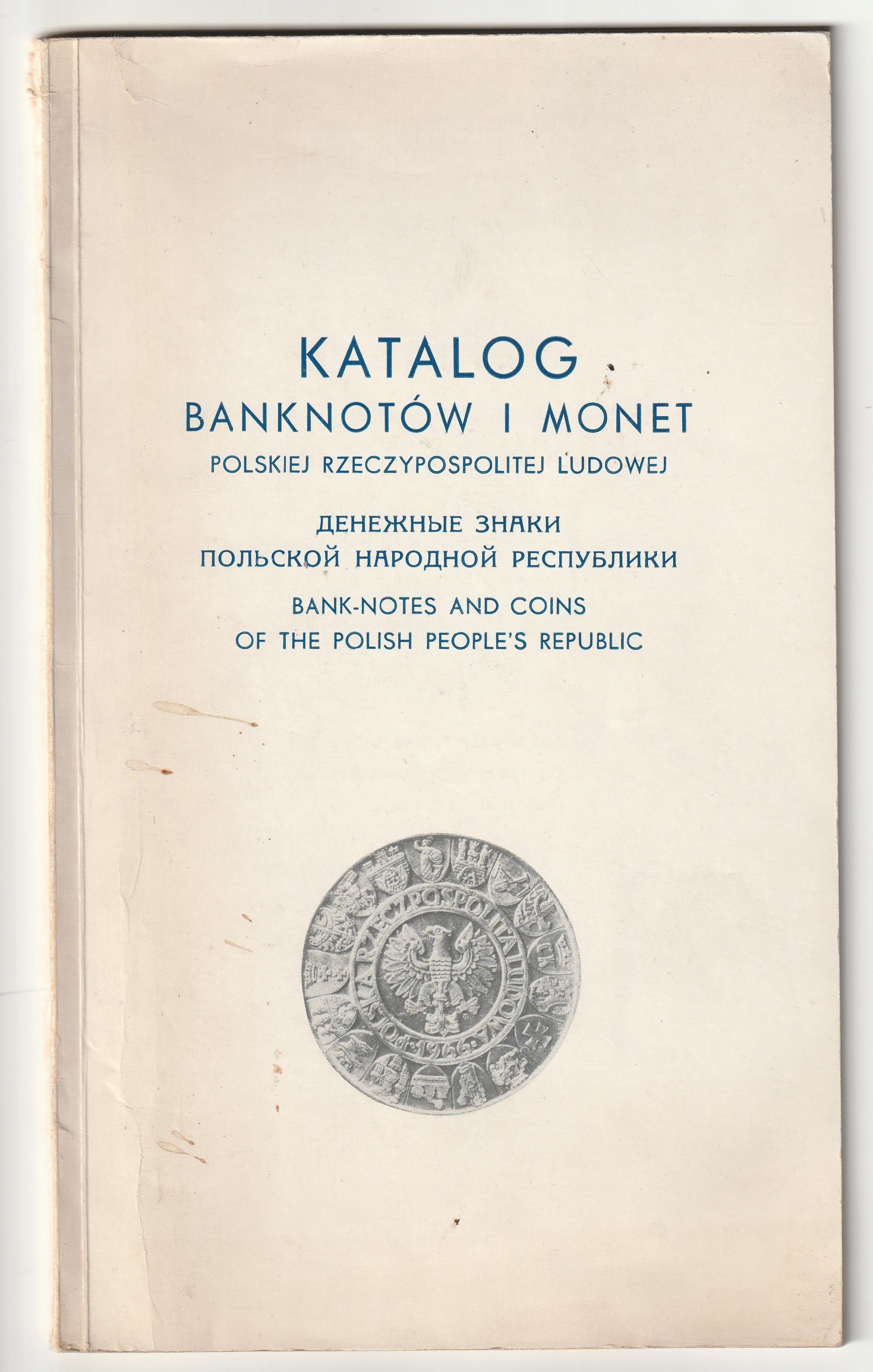KAMIŃSKI Czesław. 1) Katalog banknotów i monet Polskiej Rzeczypospolitej Ludowej, Warszawa 1966, str. 44; oprawa miękka, zabrudzona, drobne rozdarcie, drobne uszkodzenie grzbietu, st. db.; wym. ok. 150x250 mm; 2) Uzupełnienie katalogu banknotów i monet PRL…, 1968, str. 8, oprawa miękka, st. db., wym. ok. 150x255 mm; 3) Uzupełnienie katalogu banknotów i monet PRL… (1969-1971), 1972, str. 8, oprawa miękka, st. db., wym. ok. 150x255 mm; razem 3 sztuki.