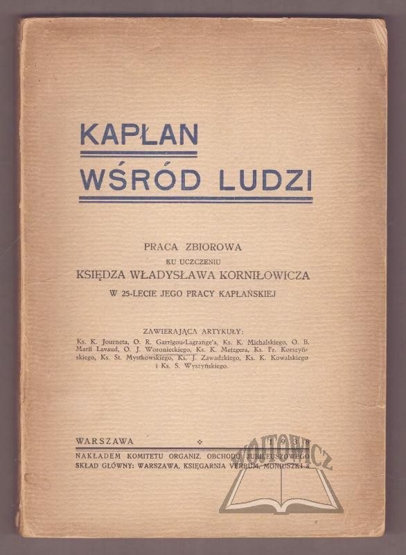 Praca zbiorowa ku uczczeniu księdza Władysława Korniłowicza w 25-lecie jego pracy kapłańskiej. Zawierająca artykuły: Ks. K. Journeta, O. R. Garrigou-Legrange'a, ks. K. Michalskiego ... Warszawa 1938. Nakł. Komitetu Organiz. Obchodu Jubileuszowego. 8, s. 216, okł. brosz. wydaw.