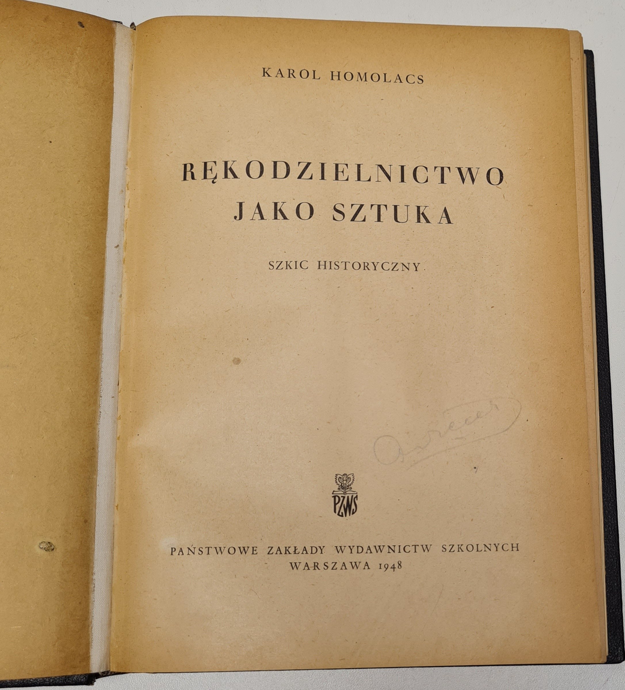 Karol Homolacs - Rękodzielnictwo jako sztuka. Szkic historyczny. Warszawa 1948. Państwowe Zakłady Wydawnictw Szkolnych, wym. 17x23,5cm s. 292. Okładka introligatorska płócienna, zachowana oprawa wydawnicza, na końcu dodano strony, jako miejsce notatek dla użytkownika. Ogólny stan zachowania więcej niż dobry.
