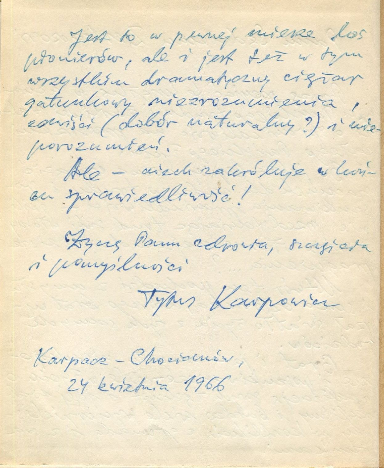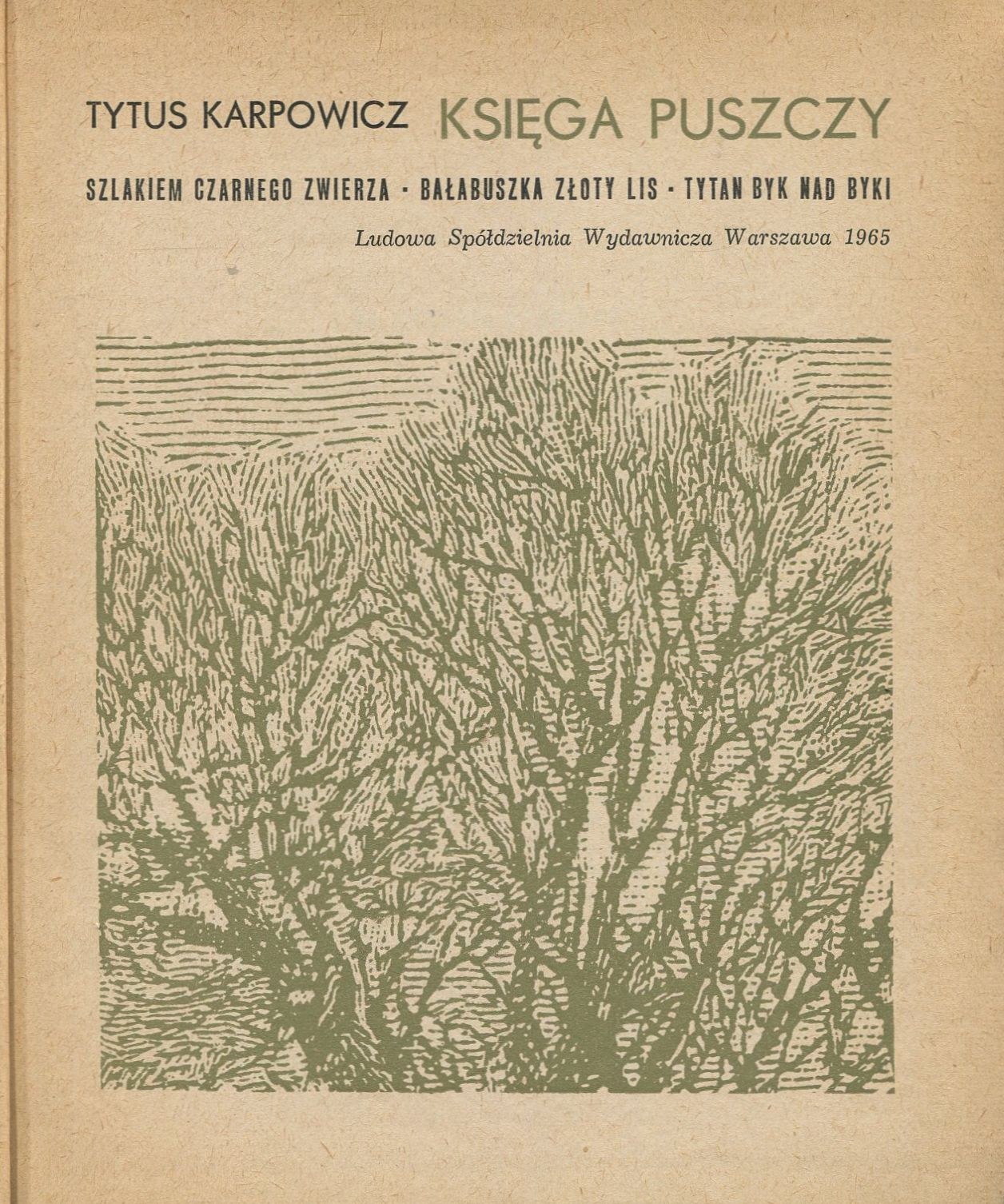 Cykl opowieści przyrodniczych Księga puszczy, obejmujący: Szlakiem czarnego zwierza, Bałabuszka złoty lis oraz Tytan byk nad byki. Na przedniej wyklejce autograf i obszerna dedykacja od autora z 1966 roku. Ilustrował Janusz Stanny.