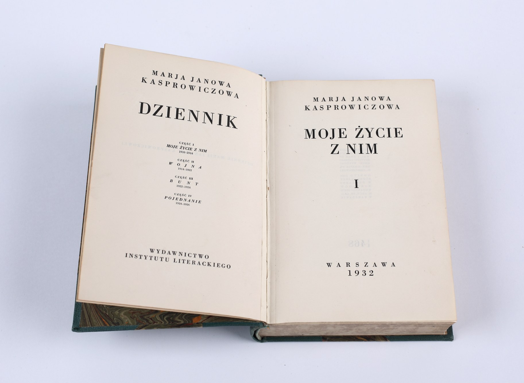 KASPROWICZOWA Janowa Marja - Dziennik [Moje życie z nim - Wojna - Bunt Pojednanie - Harenda. Warszawa 1932-1934. Wydaw. Instytutu Literackiego