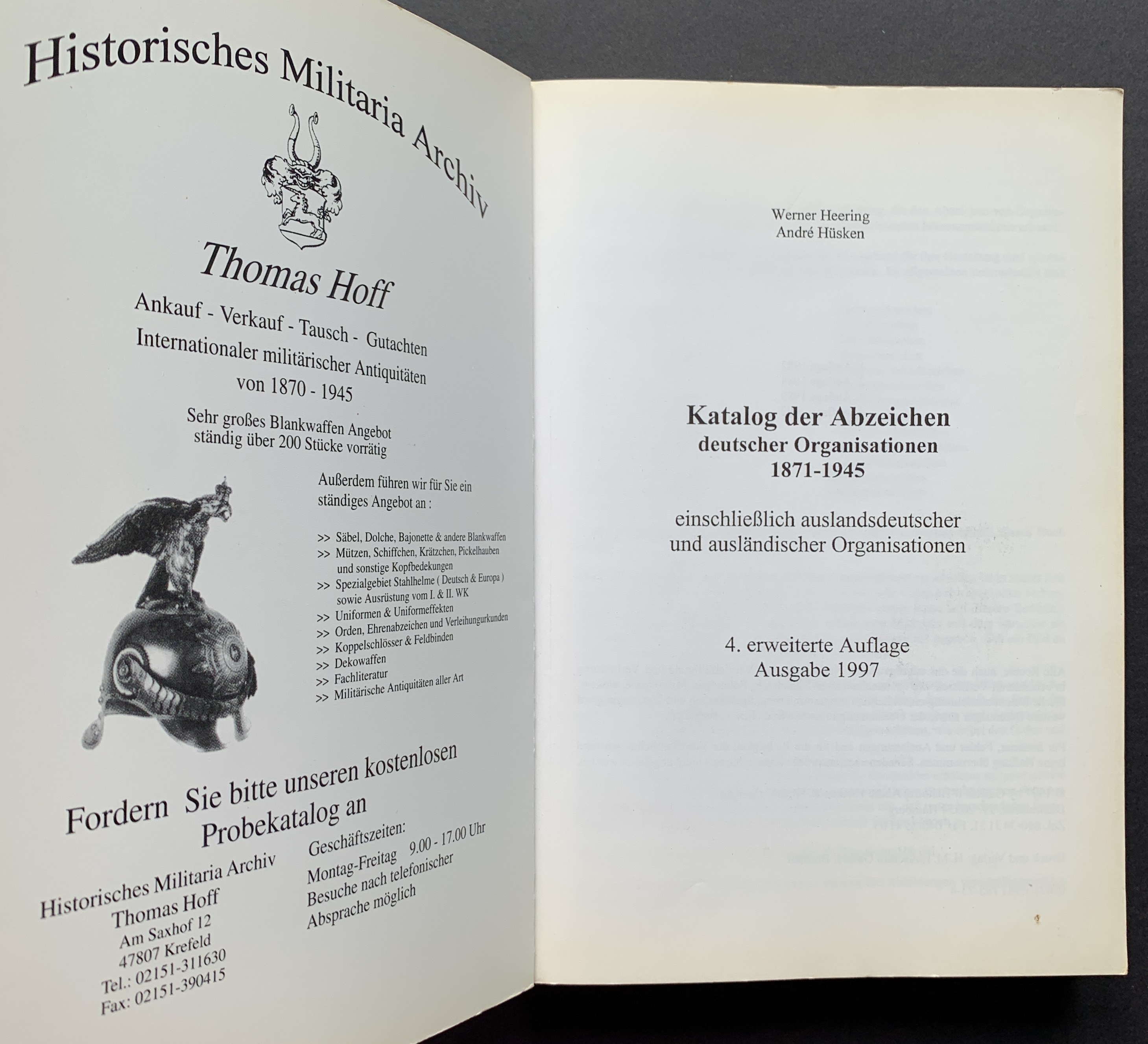 Katalog der Abzeichen deutscher Organisationen 1871-1945 einschließlich auslandsdeutscher und ausländischer Organisationen. Published by Hamburg, Selbstverlag. Niemcy [1997].