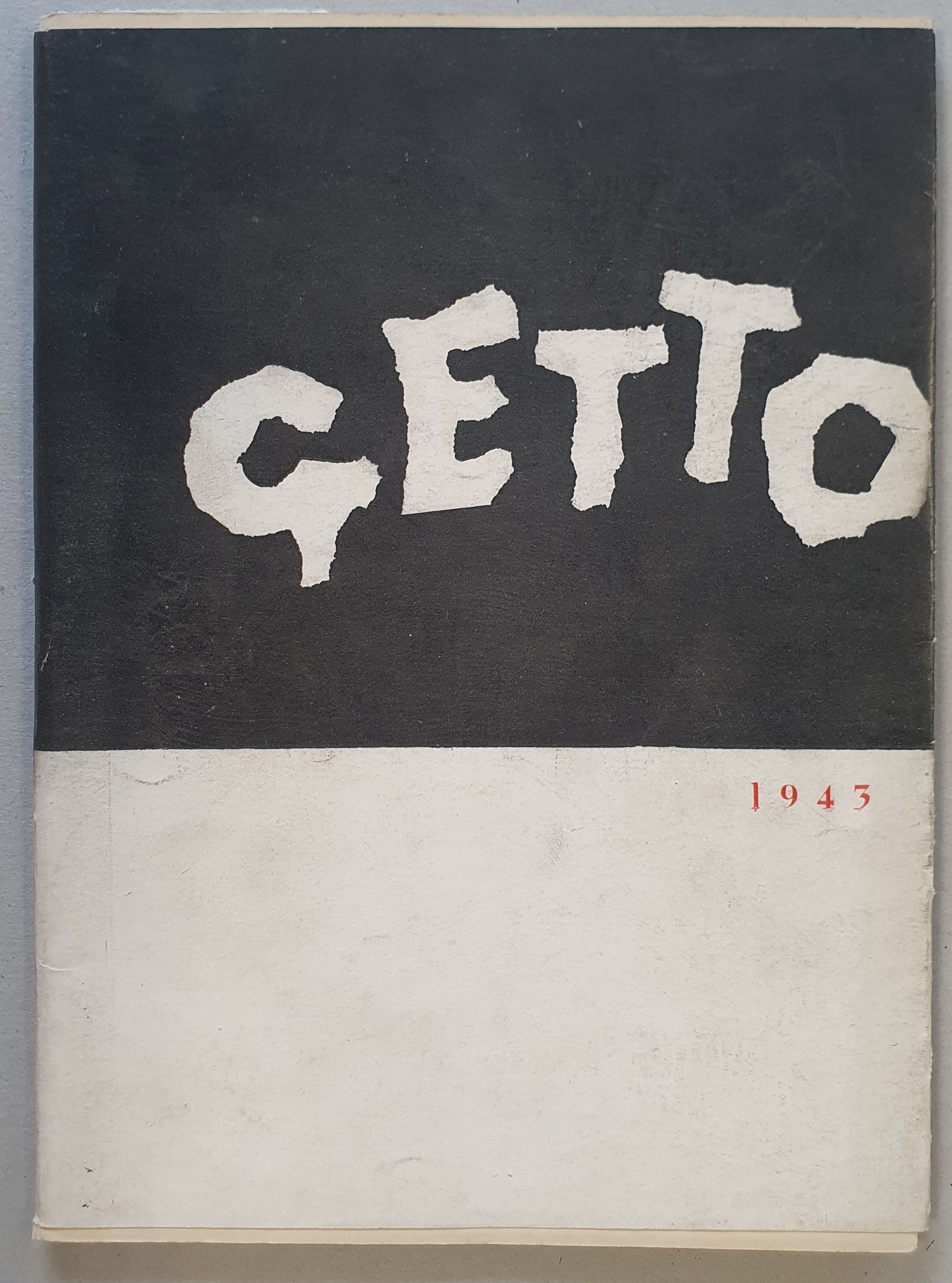 Katalog - Getto 1943, Wystawa Plastyki Poświęcona XX Rocznicy Powstania w Getcie Warszawskim. Wystawa zorganizowana przez TSKŻ i Związek Polskich Artystów Plastyków okręg warszawski, w Galerii Sztuki MDM, w kwietniu 1963 r. Komisarz wystawy M.Oberlender projekt plakatu i ekspozycji M.Oberlender. Redaktor techniczny: Sz. Lichtensztejn. Druk. RSW "Prasa", Tarczyńska 8. Zam. 4596 - L-20.