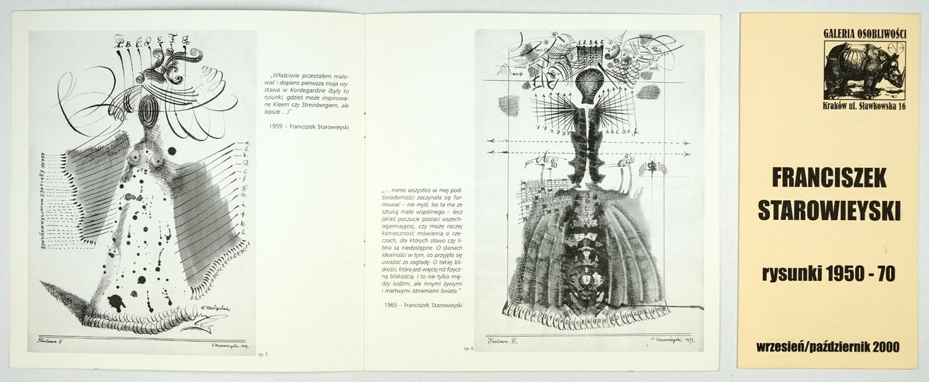 Galeria Osobliwości. Franciszek Starowieyski. Rysunki 1950-70. Kraków, IX-X 2000. 8, s. [12]. brosz.