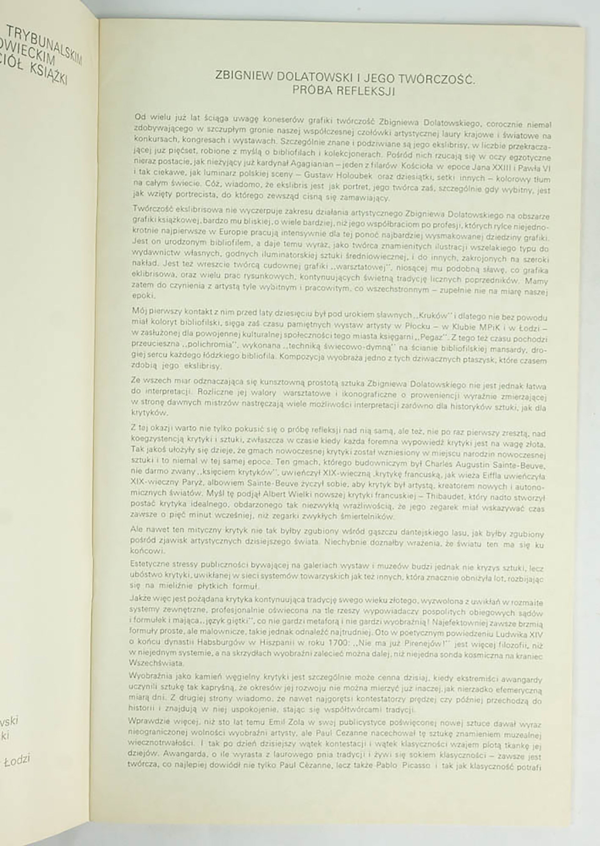 Zbigniew Dolatowski. Grafika i rysunek. Katalog wystawy, styczeń 1978r., f. 17 x 28cm, s. 24