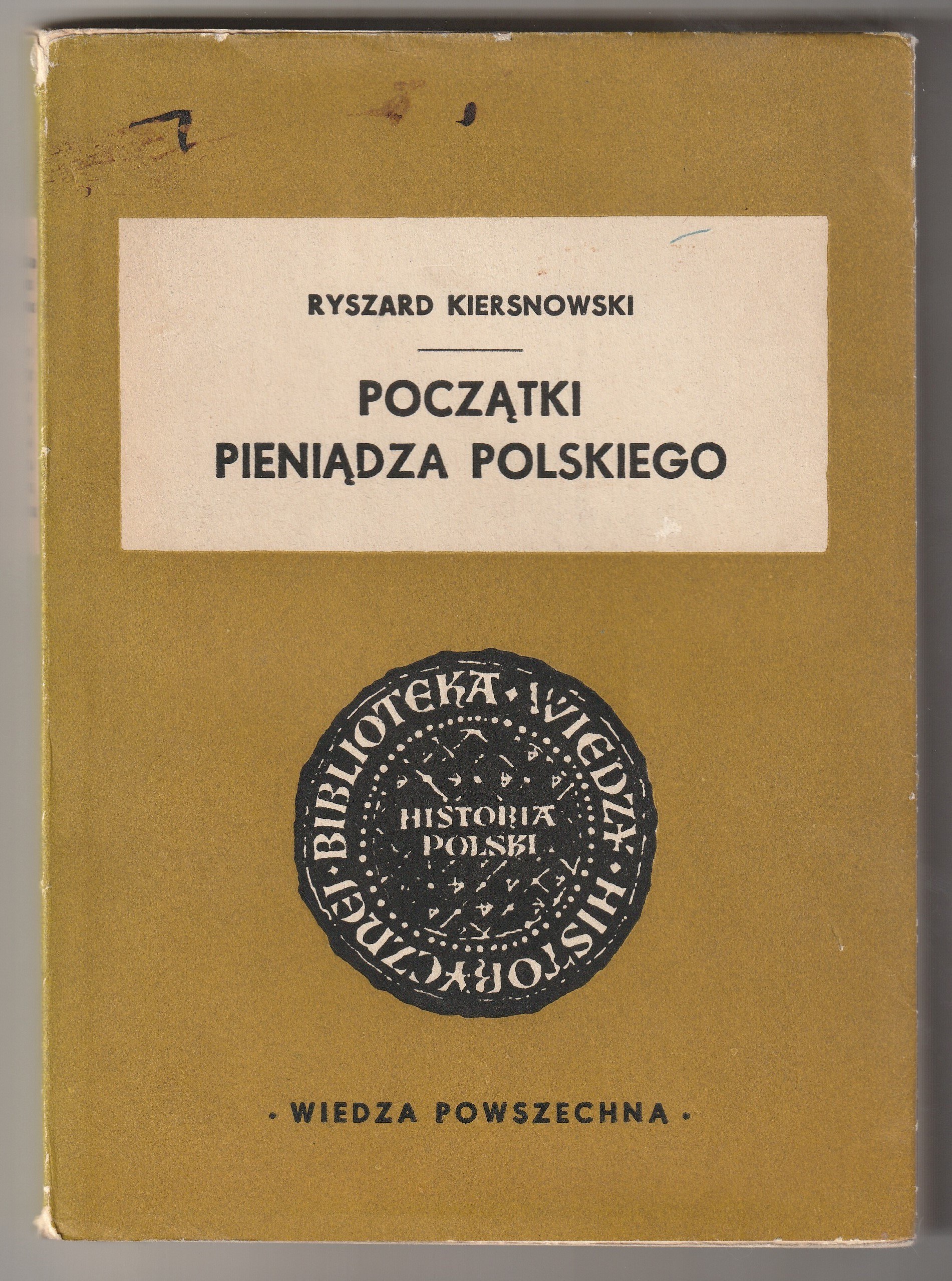 KIERSNOWSKI Ryszard. Początki pieniądza polskiego, wyd. WP, Warszawa 1962, str. 196, fot. cz.-b. 41; oprawa miękka z obwolutą (za zabrudzeniami), st. bdb.; wym. ok. 145x205 mm.