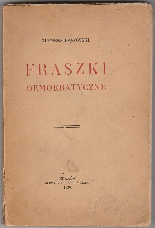 Drukarnia "Głosu narodu", Kraków 1926, 136s, oryg. okładka broszurowa, s. db uszk. grzbiet - brak ok 1 cm,