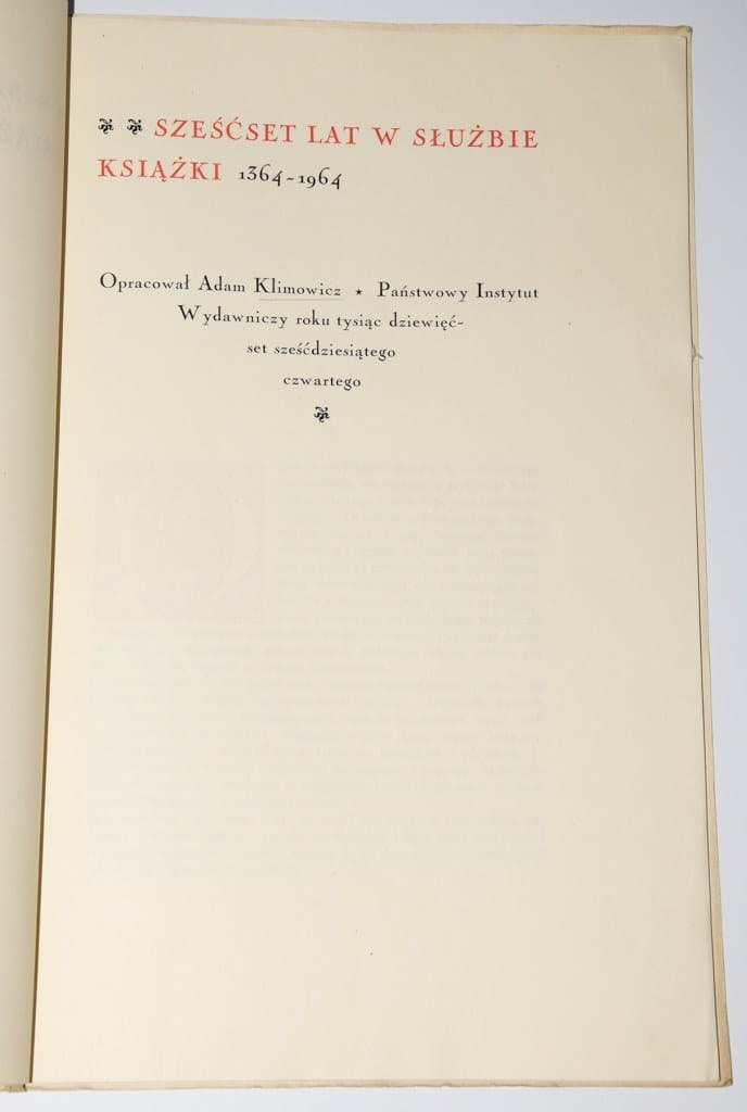 Tytuł: Sześćset lat w służbie książki 1364-1964.