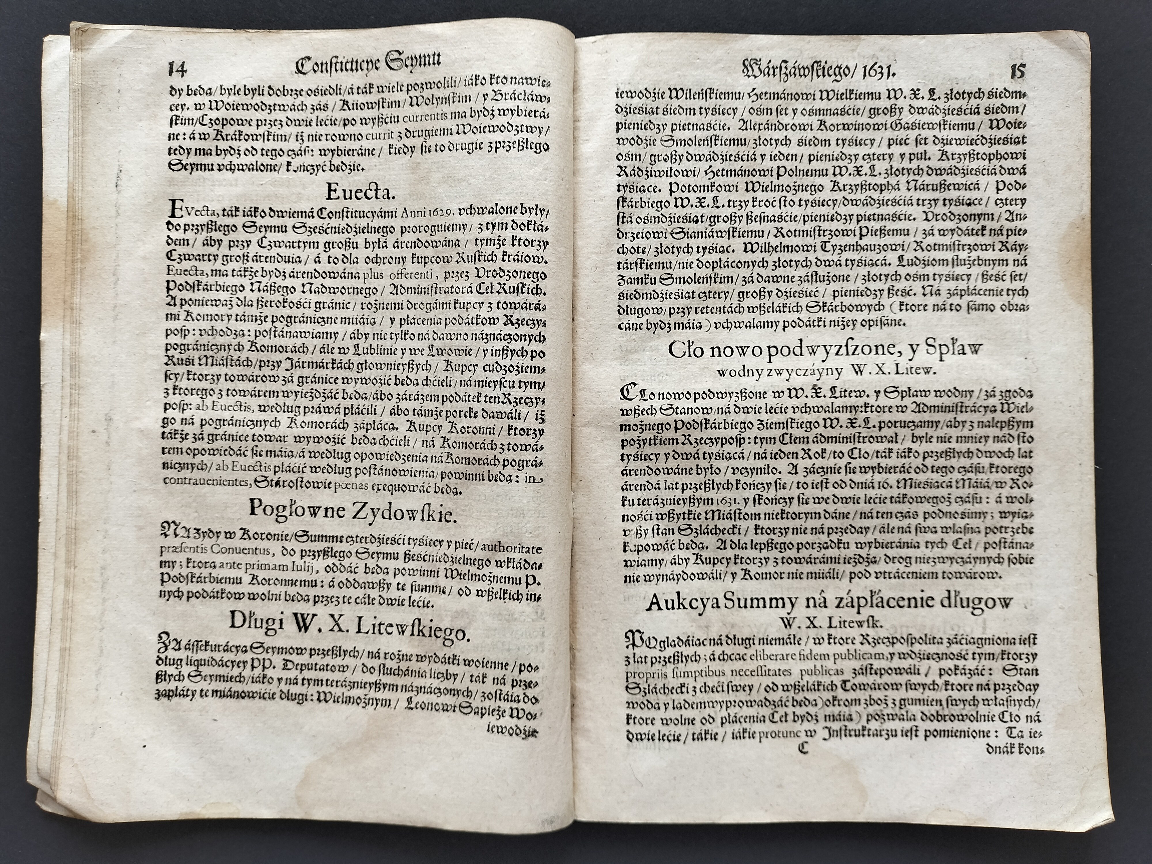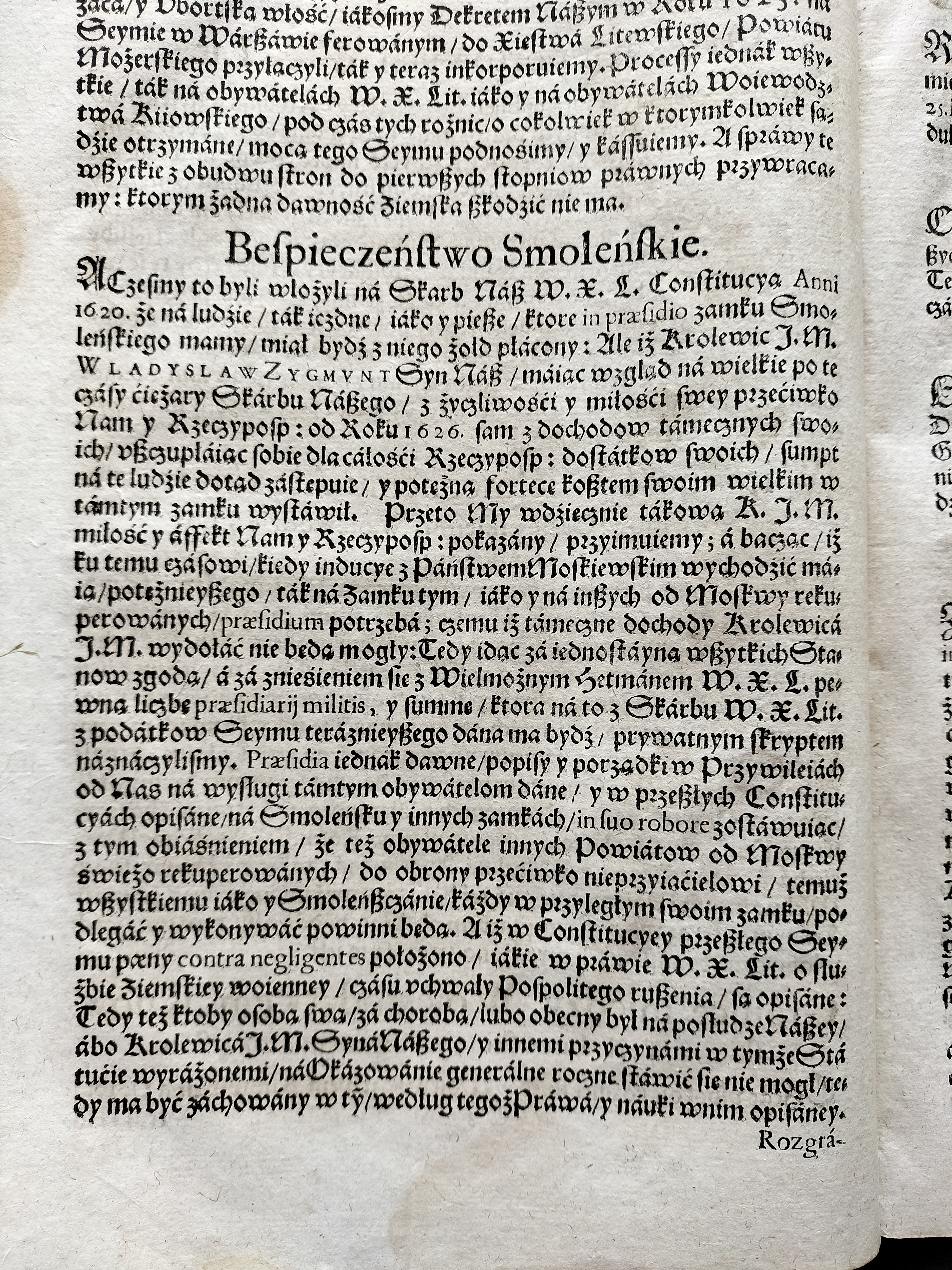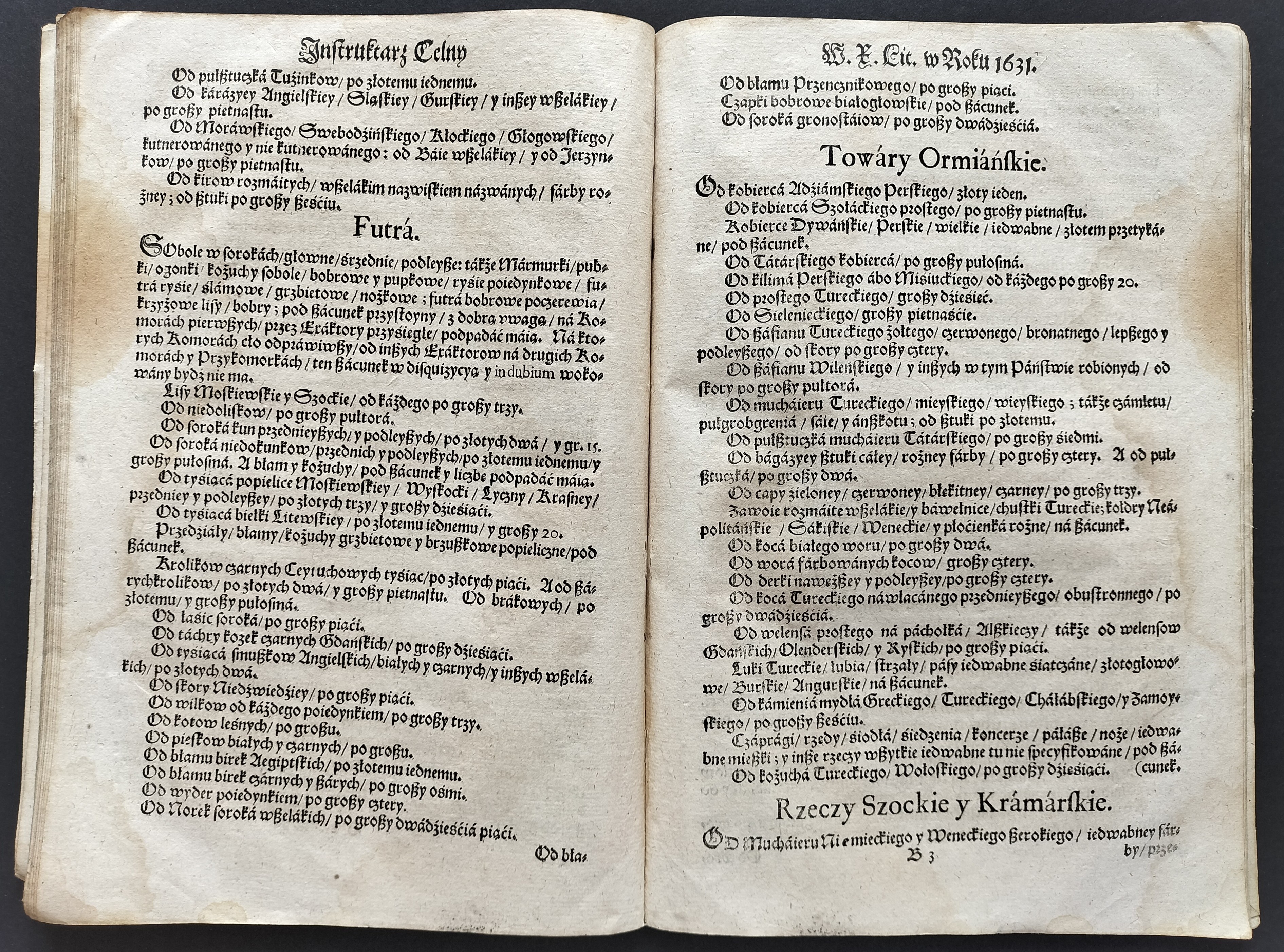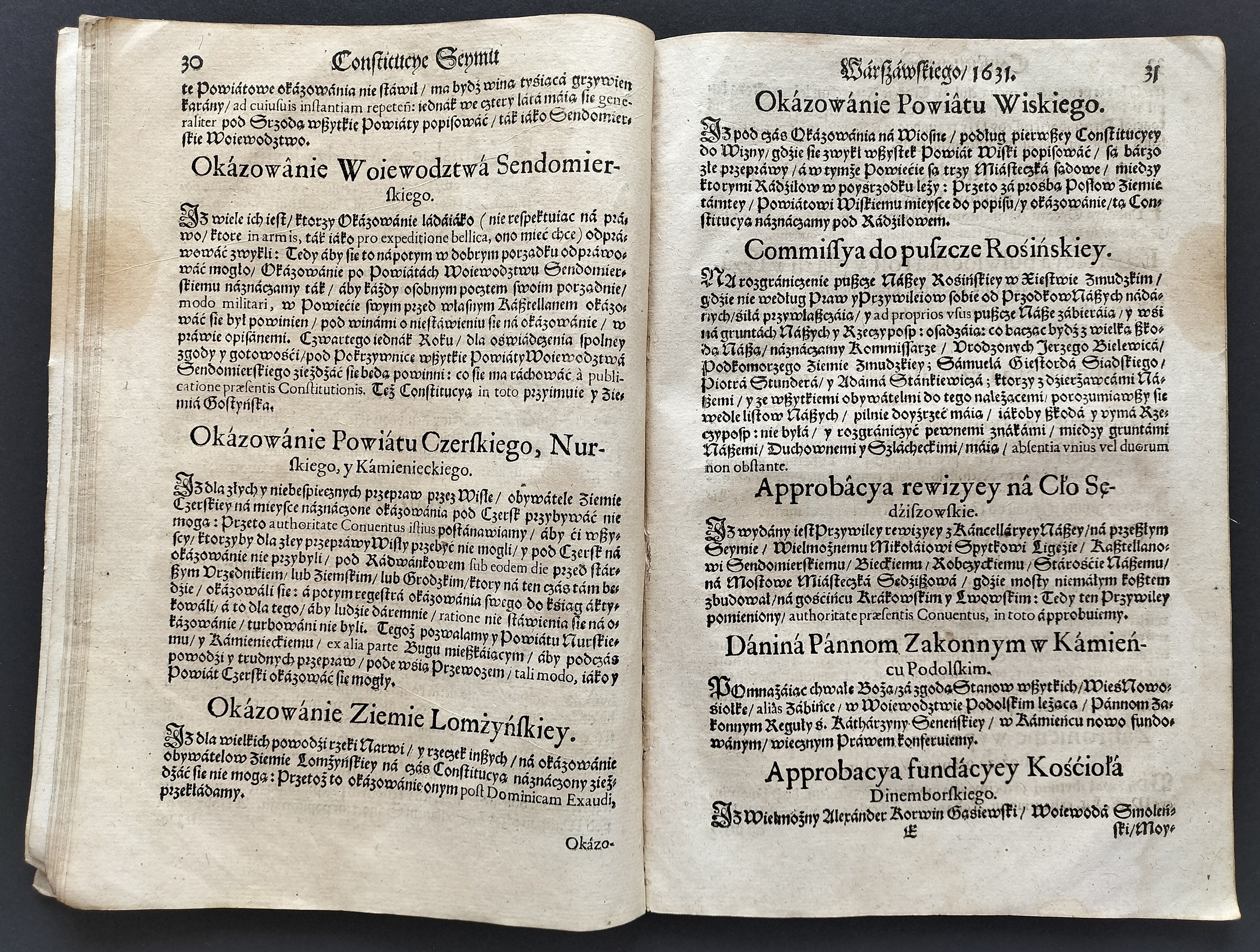 [Klocek] Konstytucje Sejmu & Instruktarz Celny & O Podatkach Rzeczpospolitej [CONSTITVCIE SEYMV Wálnego Koronnego WARSZAWSKIEGO, Roku Páń. M. DC. XXXI. Dniá 12. Márcá. Cum Gratia & Priuilegio S. R. M. W KRAKOWΙΕ, W Drukarni Andrzeiá Piotrkowczyká, Krolá J. M. Typographá] Kraków 1631-1632.